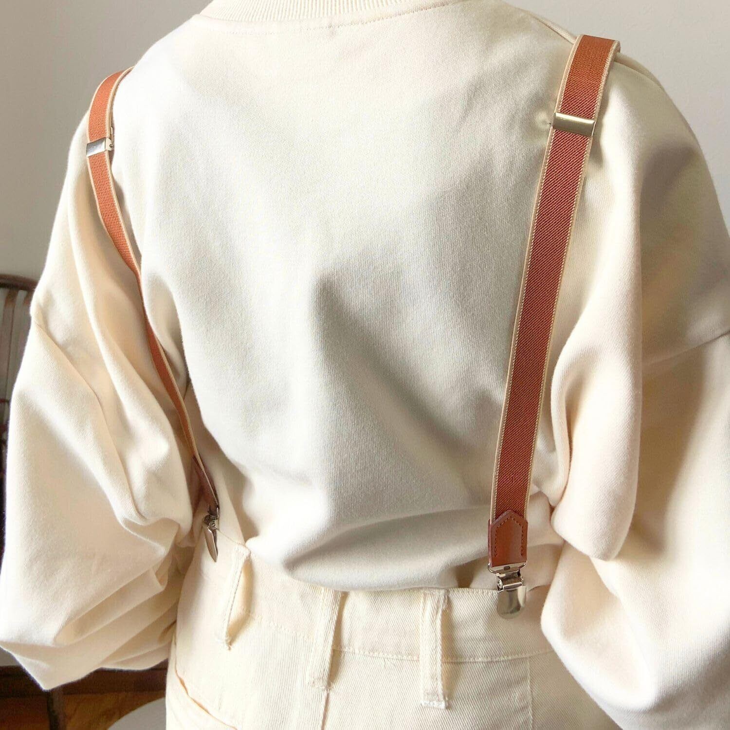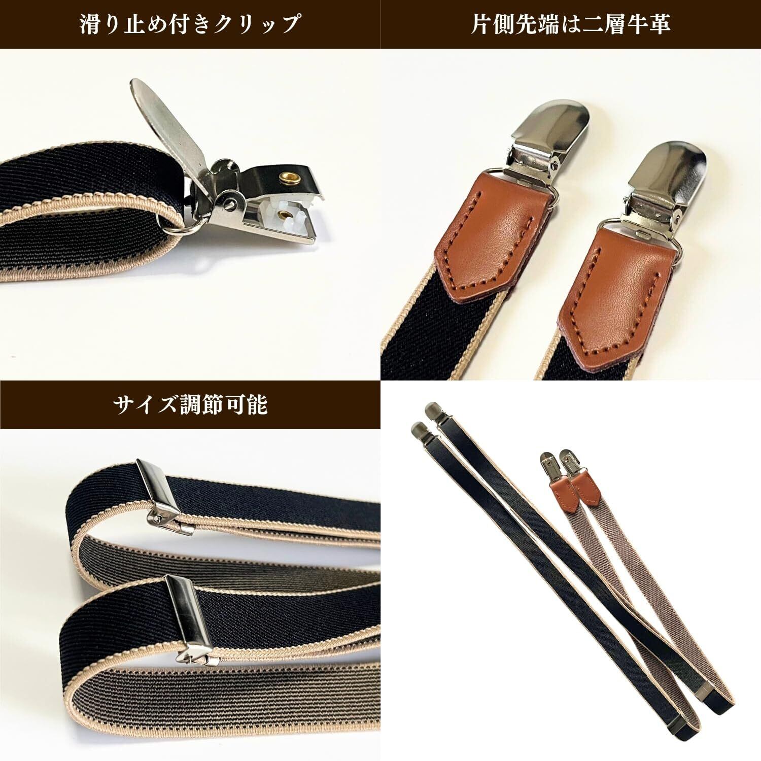 [haoa] I型 独立型 サスペンダー 20mm幅 バラ 2本タイプ 前後2way メンズ レディース クリップ 革 吊りバンド 長さ調節可能 男性 女性 細め カジュアル ビジネス レザー シンプル おしゃれ