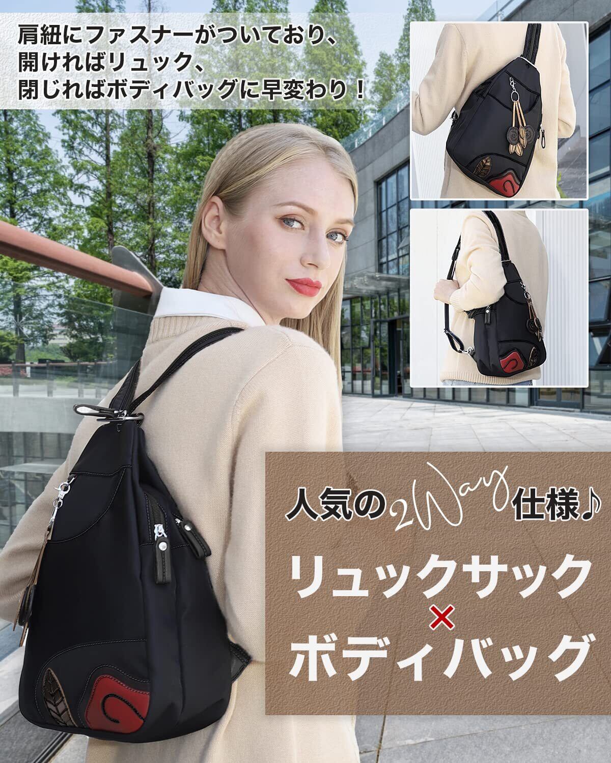 [ケーエルユー] リュックサック レディース バックパック ボディバッグ 斜めがけ 軽量 ナイロン 防水