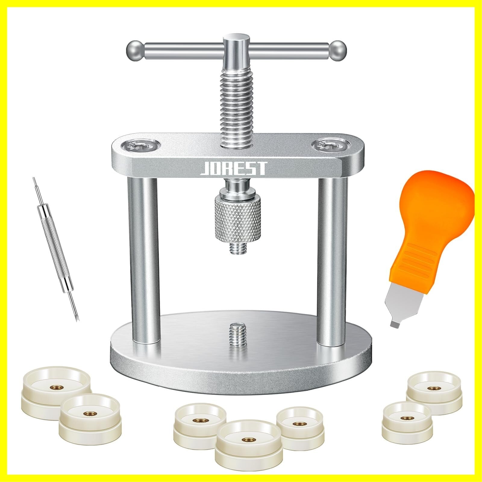 JOREST時計 裏蓋閉め器、腕時計用 プレスセット、時計 修理 電池交換、腕時計こじ開け工具、時計 裏蓋オープナー、裏 蓋 外し、取扱説明書(英語版)、丸型ダイヤル専用