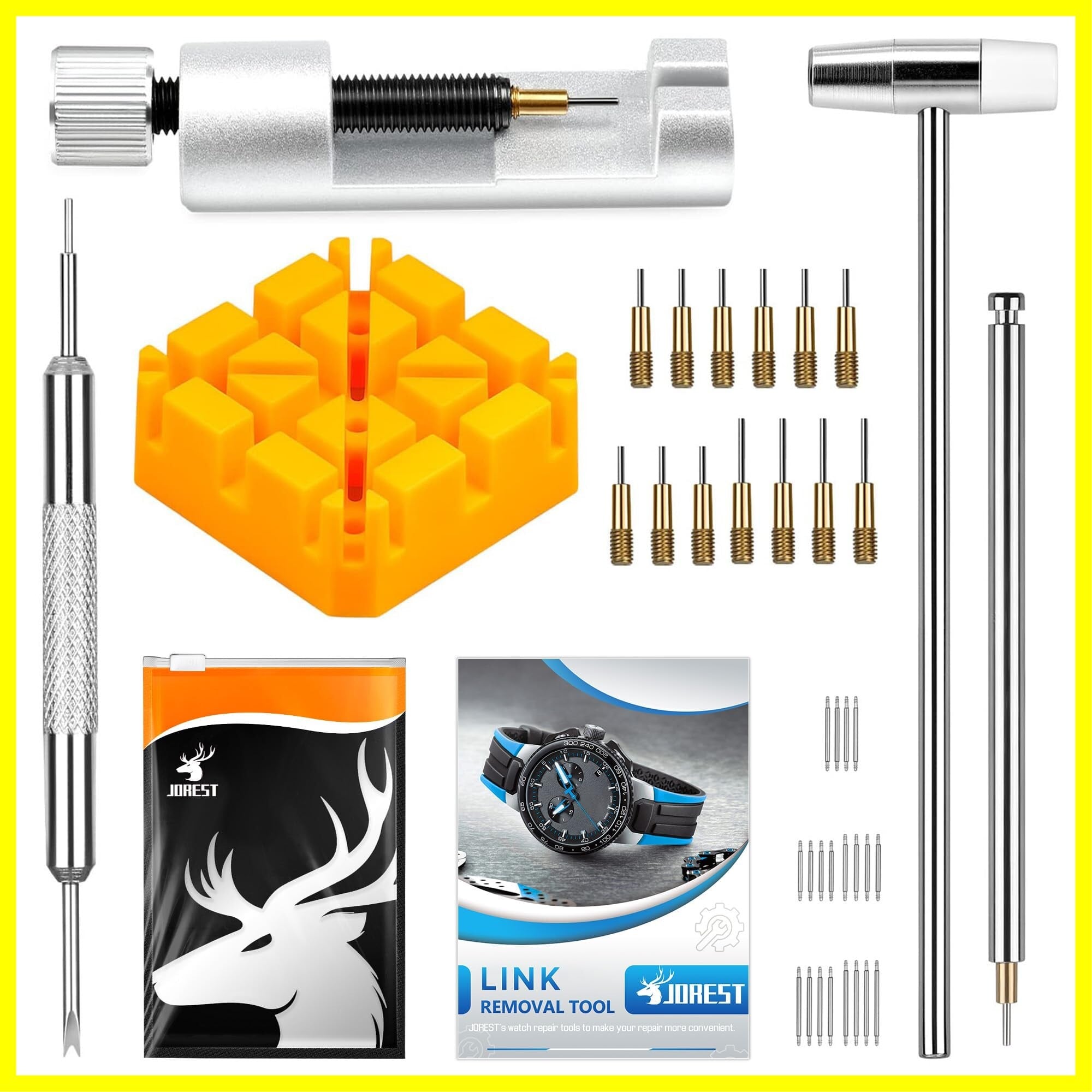 【JOREST】時計ベルト調整工具セット、腕時計 ベルト交換 工具、バネ棒外し 、腕時計 ピン抜き工具、取扱説明書、20個 バネ棒、13個 交換針、取扱説明書(英語版)