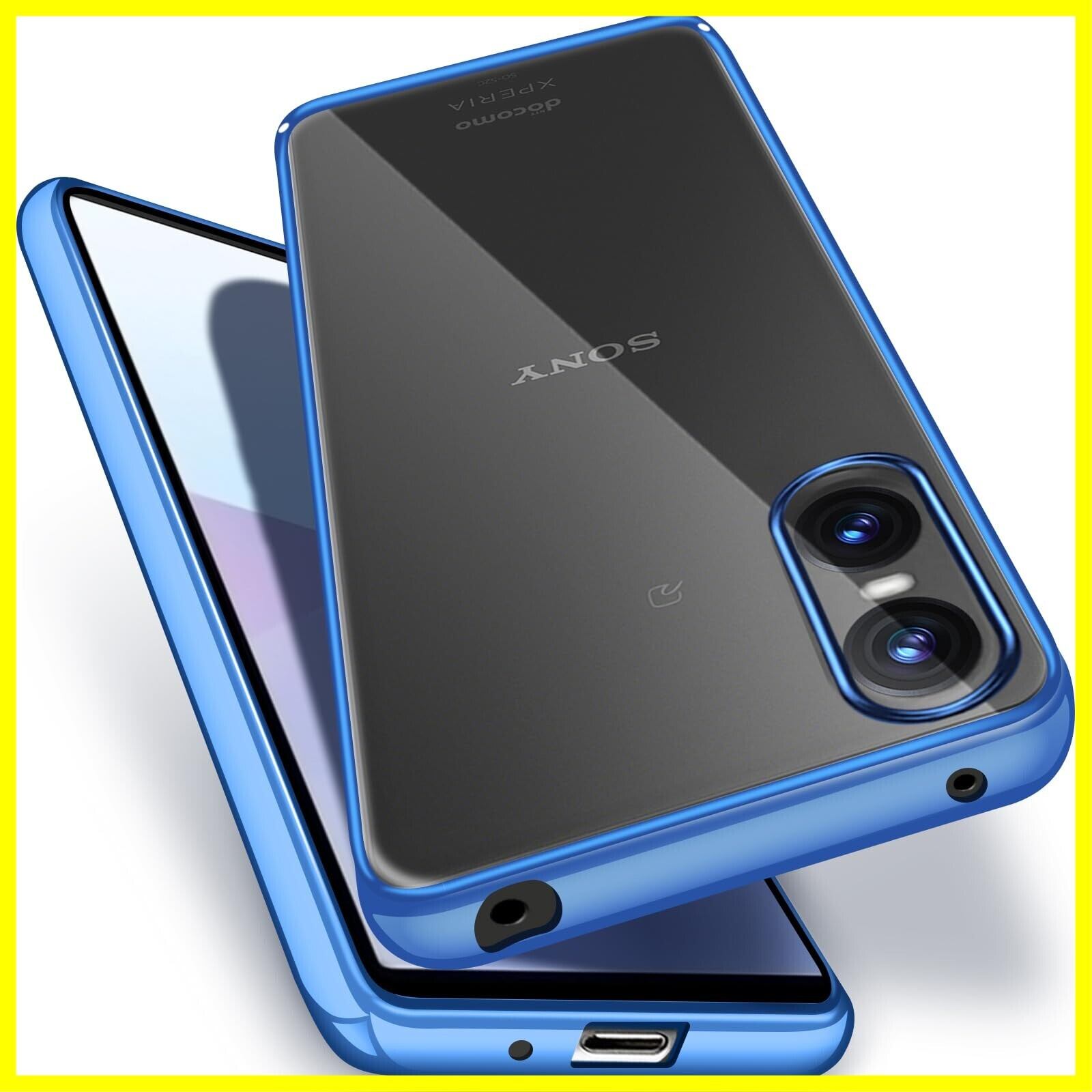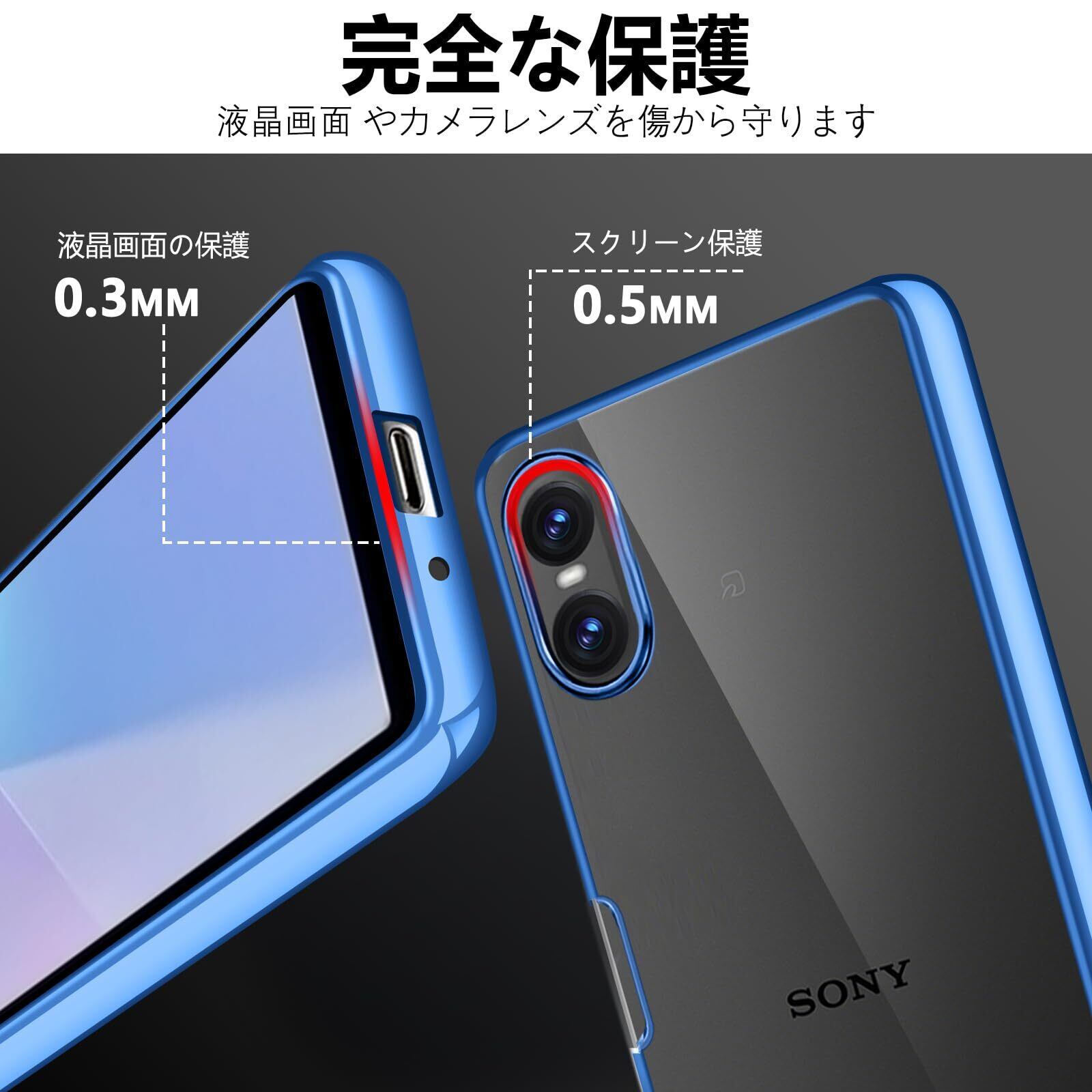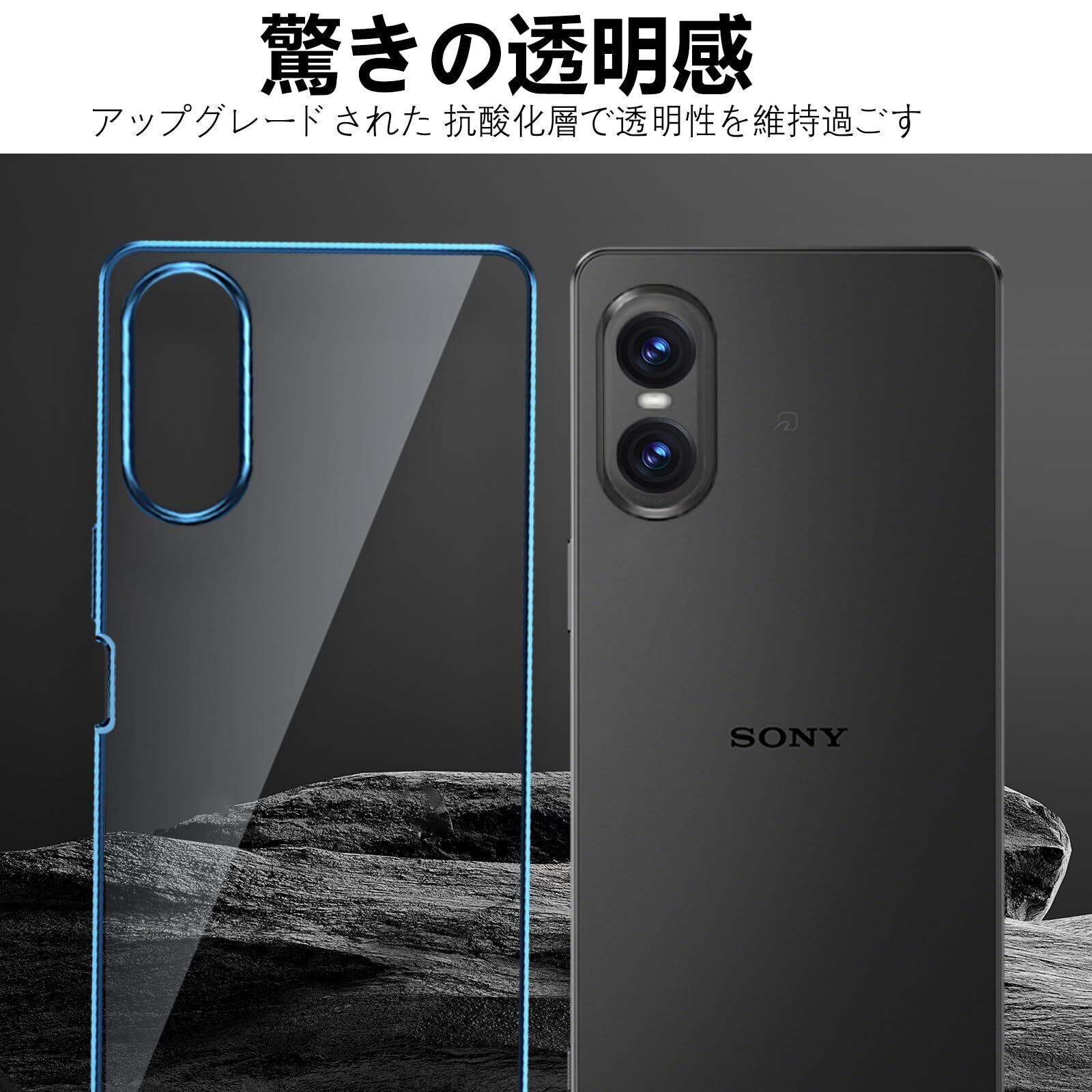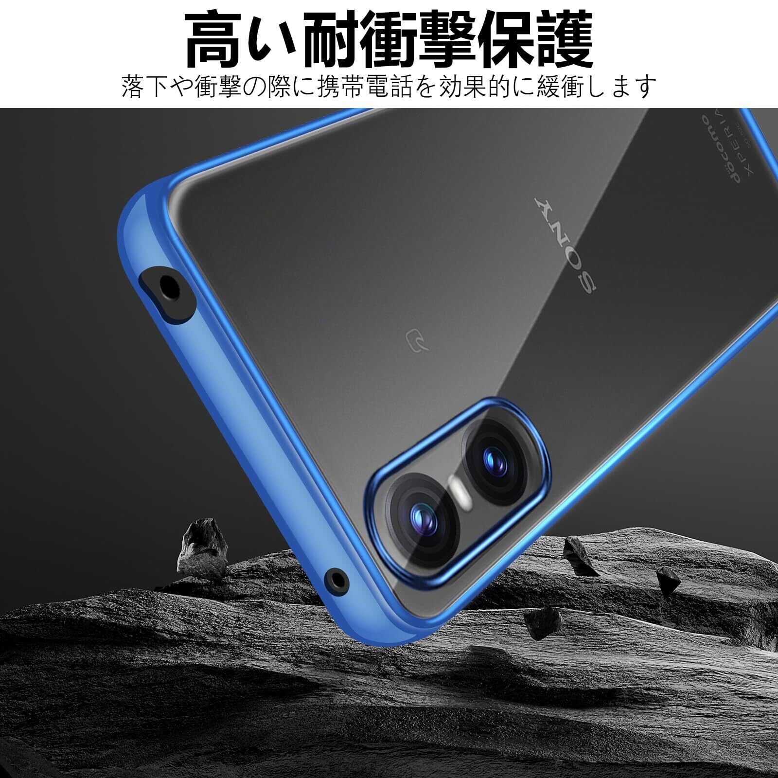 Sony Xperia 10 vi クリア ケース 耐衝撃 SO-52E SOG14 XQ-ES44 カバー 米軍MIL規格 エクスペリア10vi スマホケース TPU 保護ケース ストラップホール付き メッキ加工 クリアバック(ブルー)