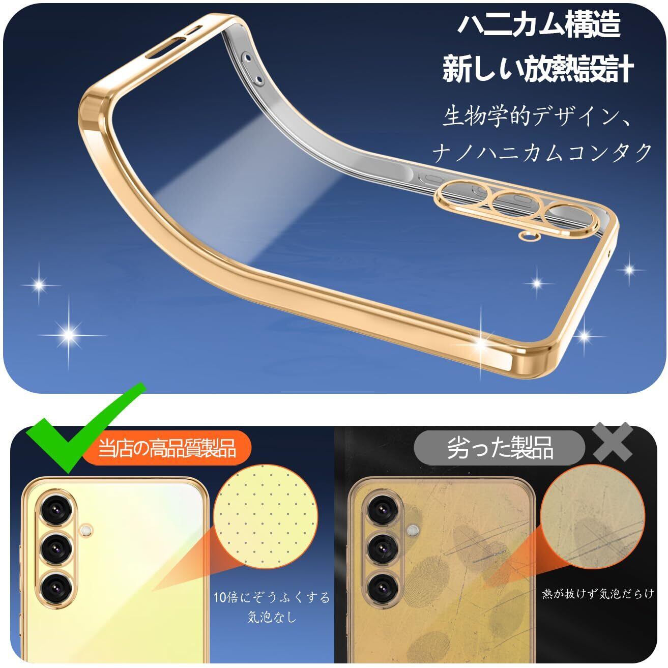 Samsung Galaxy A55 ケース クリア SC-53E SCG27 スマホケース 耐衝撃 薄型 米軍MIL規格 tpu ギャラクシー A55 カバー 一体型 人気(ゴールド)