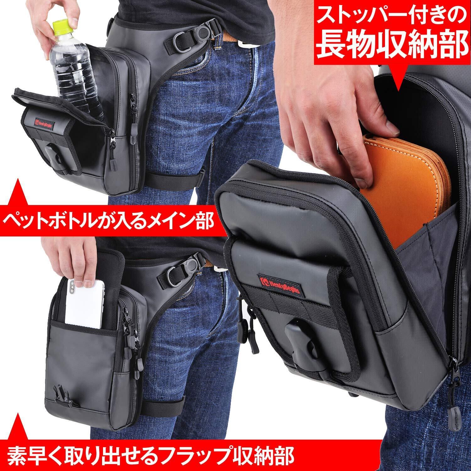 ヘンリービギンズ(Henly Begins) デイトナ バイク レッグバッグ 1.5L ターポリン ペットボトル収納可 3室構造 ホルスターバッグ3 DH-730 ブラック 98660