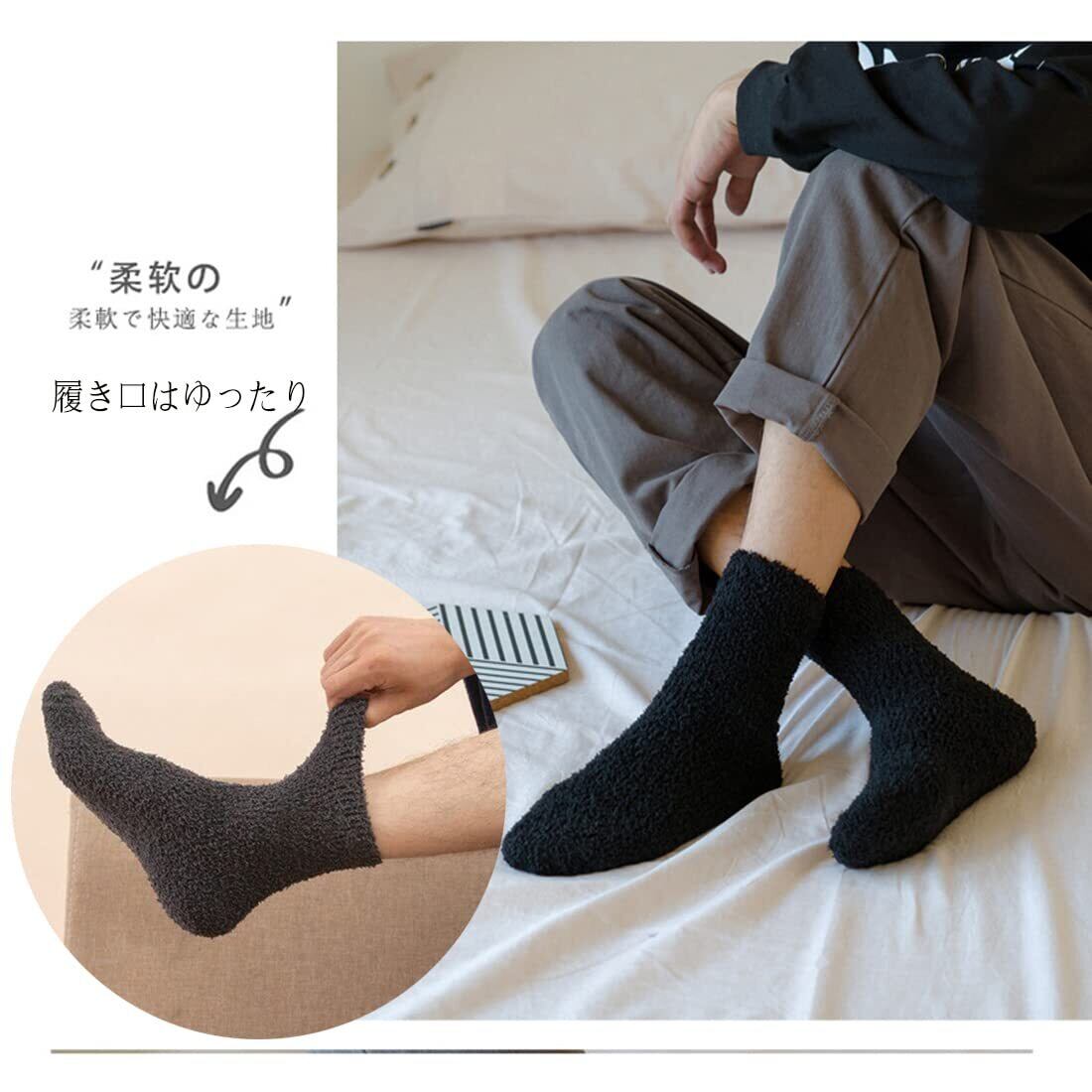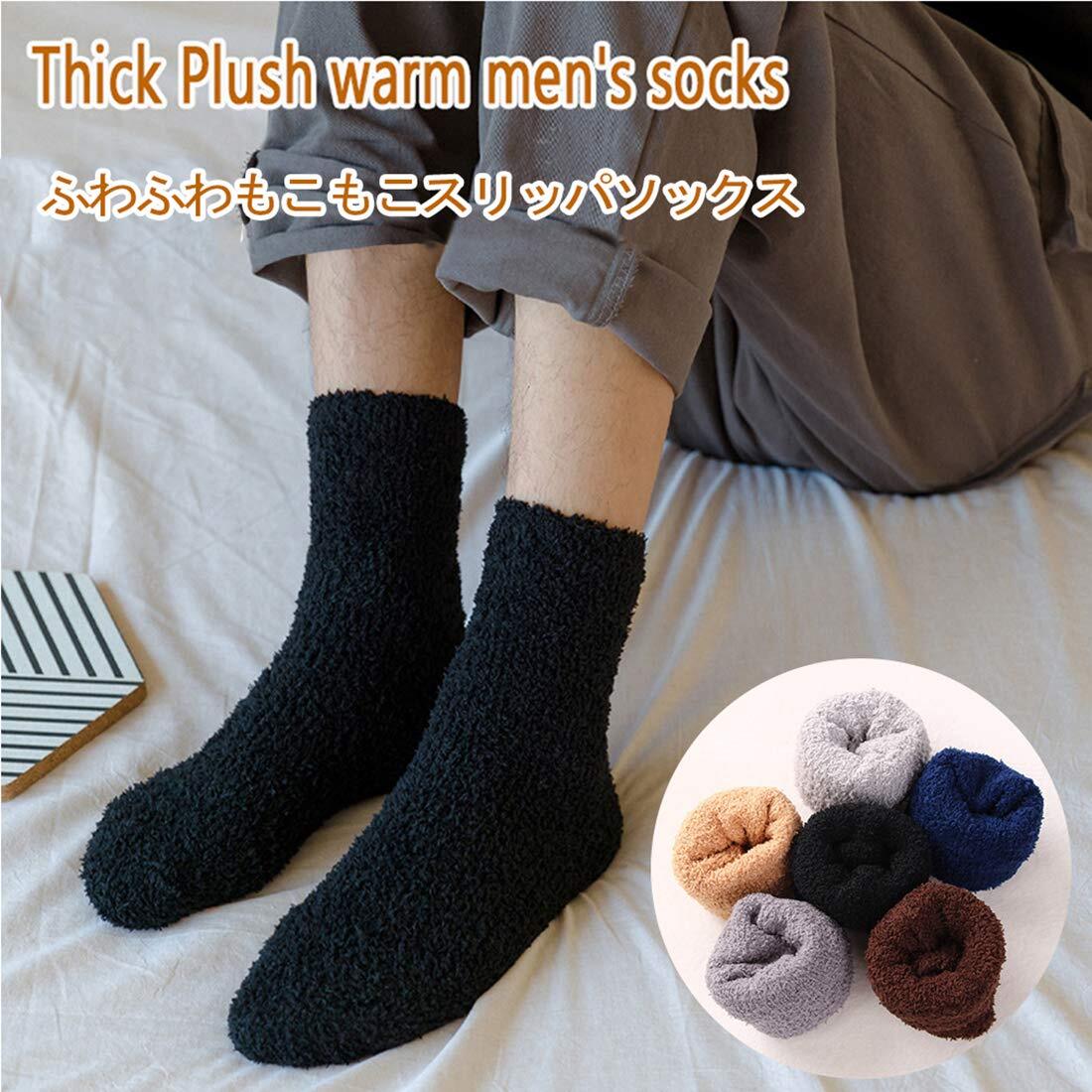 [Yazon] もこもこ靴下 メンズ 冬 ルームソックス 厚手 暖かい靴下 男性 防寒くつした メンズ 冬用 おしゃれ 室内 保温 冬用靴下 部屋 睡眠 ポカポカ モコモコソックス 24-27cm 5足セット
