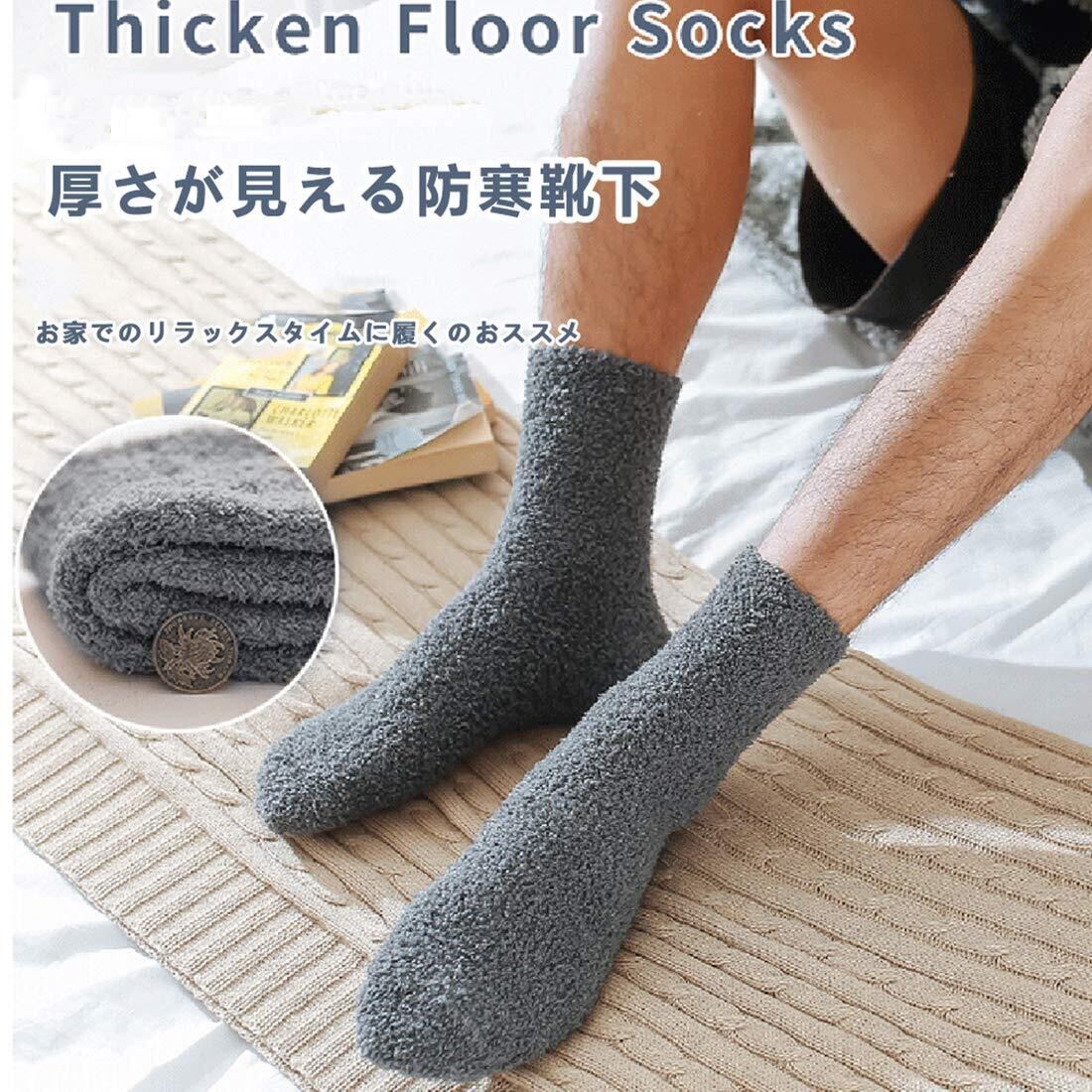 【あたたかいルームソックス メンズ】このメンズ もこもこ ルームソックスは履き心地いい、優しくて快適、フィット感よいもこもこ靴下メンズです。足用のサイズ:24cm-27cm、ほとんどの男性に適用し、弾力がある素材を使って、優れた履き心地を実現しております。伸縮性があり、きつすぎたり緩すぎたりせずに足にぴったりとフィットします。快適で耐久性のあるこのメンズ冬用厚手もこもこソックスは生活の大好物になれます。