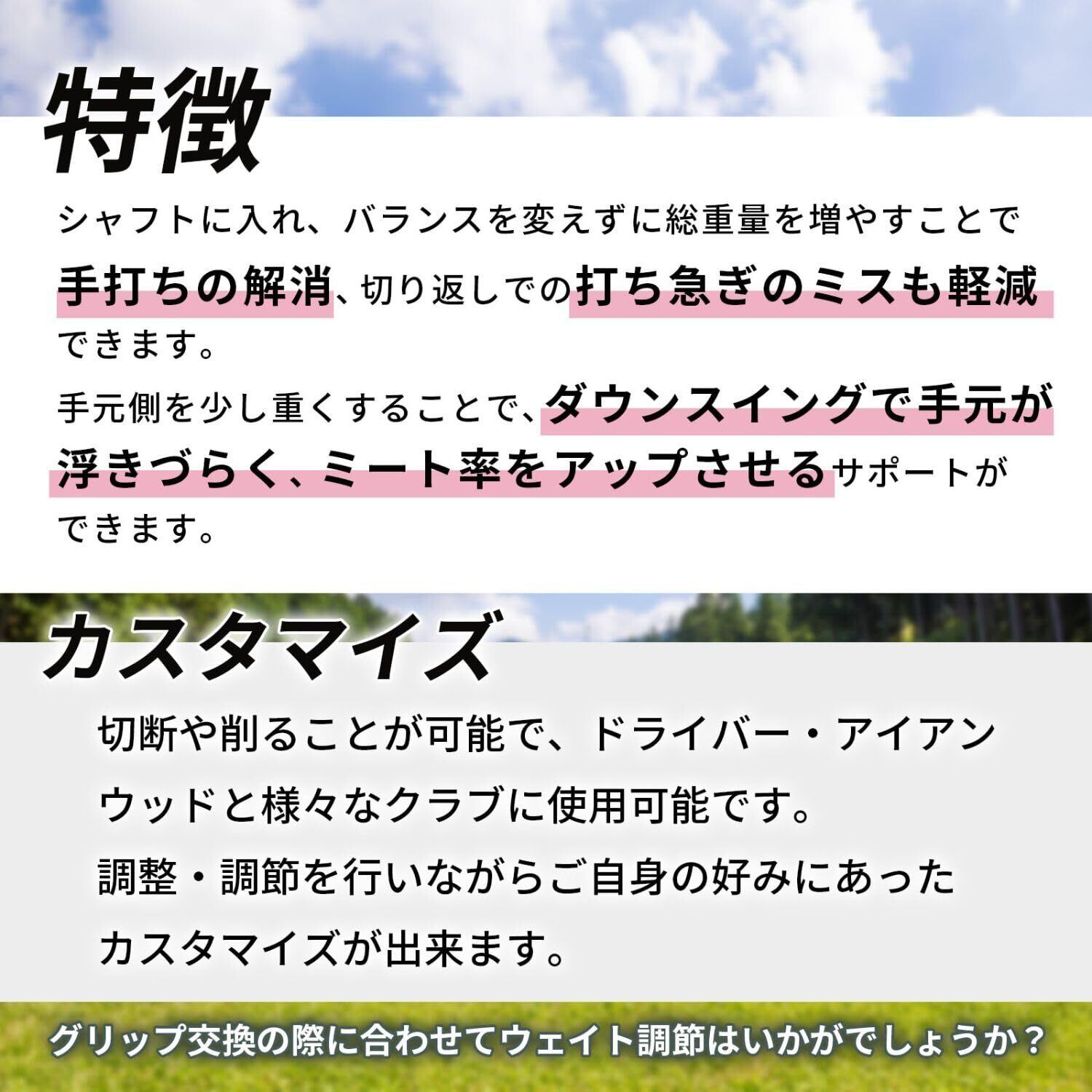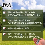 【簡単に取り付けて調整可能!】専用の鉛テープと併せて、ストレスなく簡単に取り付けができます。必要に応じて重りを追加することで、自分の理想のフィーリングに最適化することが可能です。これにより、ラウンド中の集中力を高め、実力を発揮しやすいパフォーマンスを実現します。