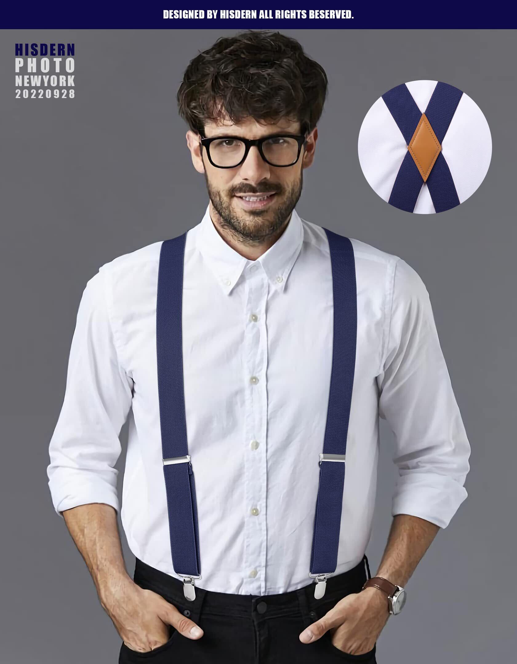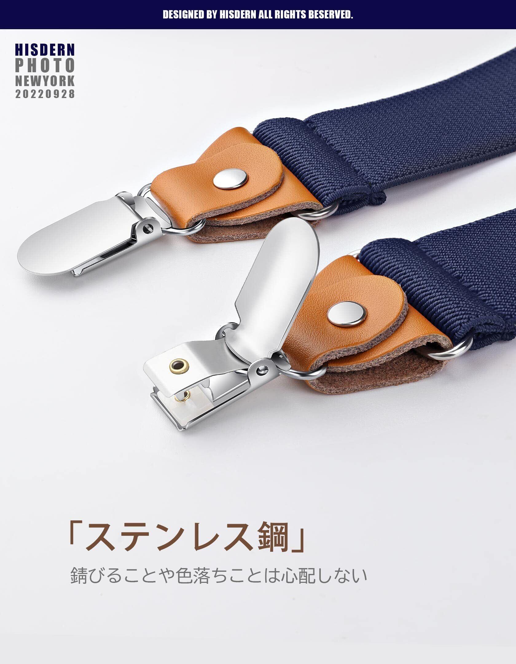 [HISDERN] X-01 サスペンダー X型/Y型 35mm幅 錆びない クリップ式 調節可能 男女兼用 使いやすい ズボン吊り メンズ ビジネス カジュアル おしゃれ