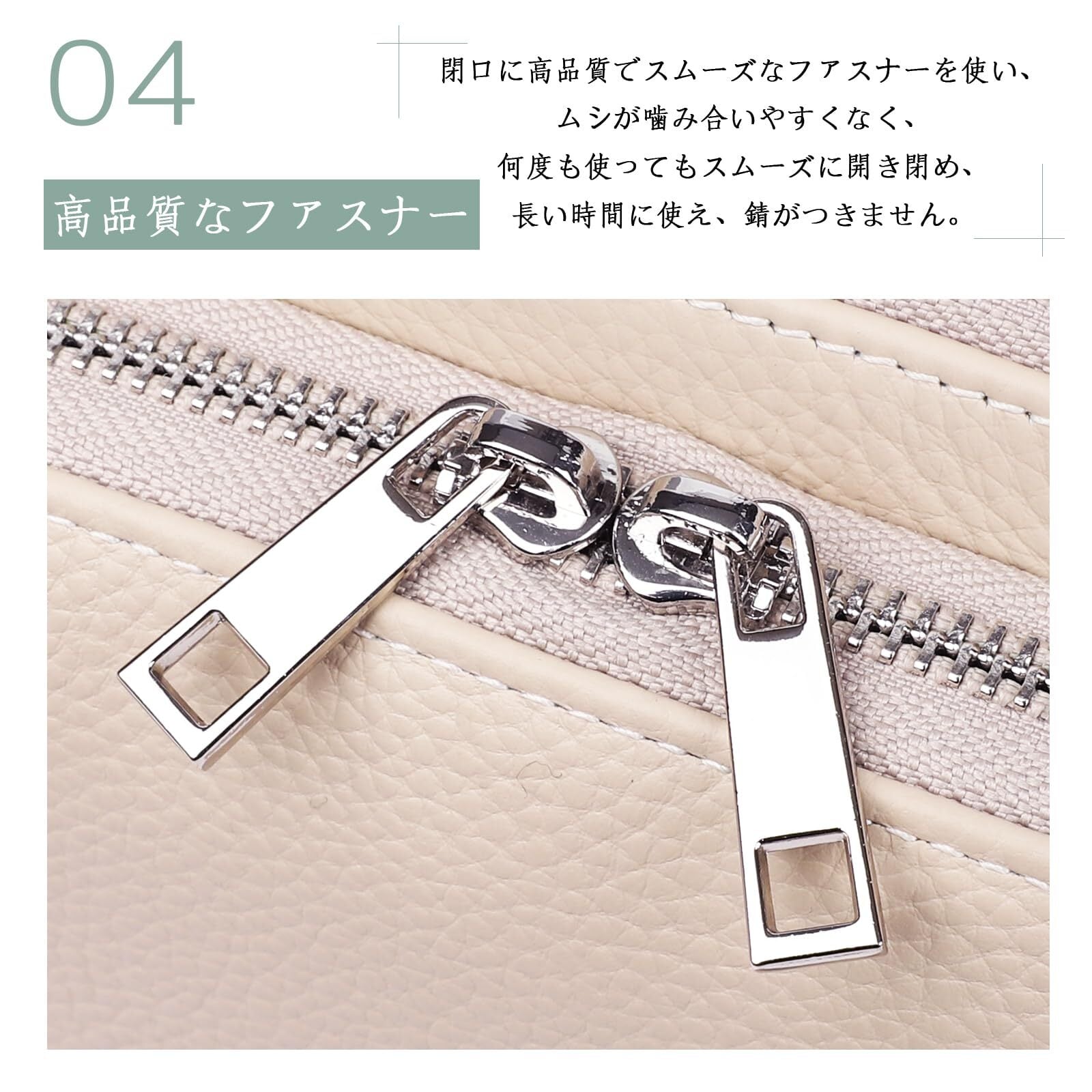 『多機能なお財布ポケット』フロントはお財布の仕様で、お札入れが2つ、間仕切りジッパーポケットが1つ、カード入れが12つが配置しております。たくさんのカード、お札、小銭などをスッキリ収納できます。 必要最低限でお出かけしたい時に最適で、シンプルなデザインのショルダーバッグです。