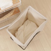 【撥水加工で清潔感をキープ!】内側には撥水加工が施されており、湿った衣類や汚れ物を入れても安心です。水分が気になる洗濯物も、サッと収納できるので、日常的な使用に最適です。清潔な状態を保ちながら、効率的に整理整頓できます。