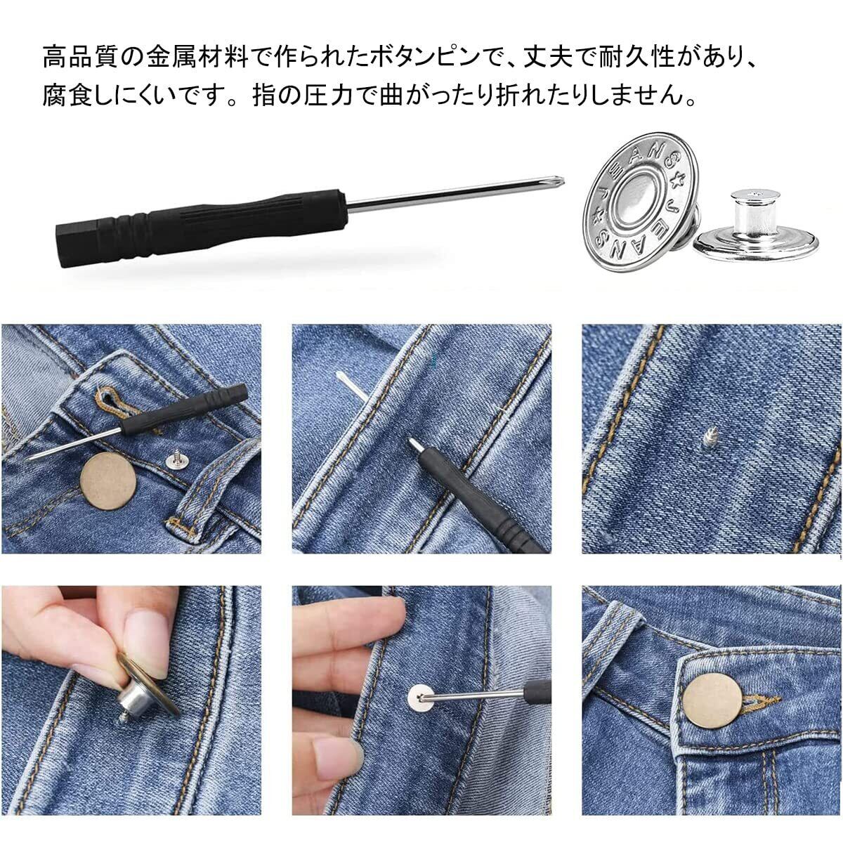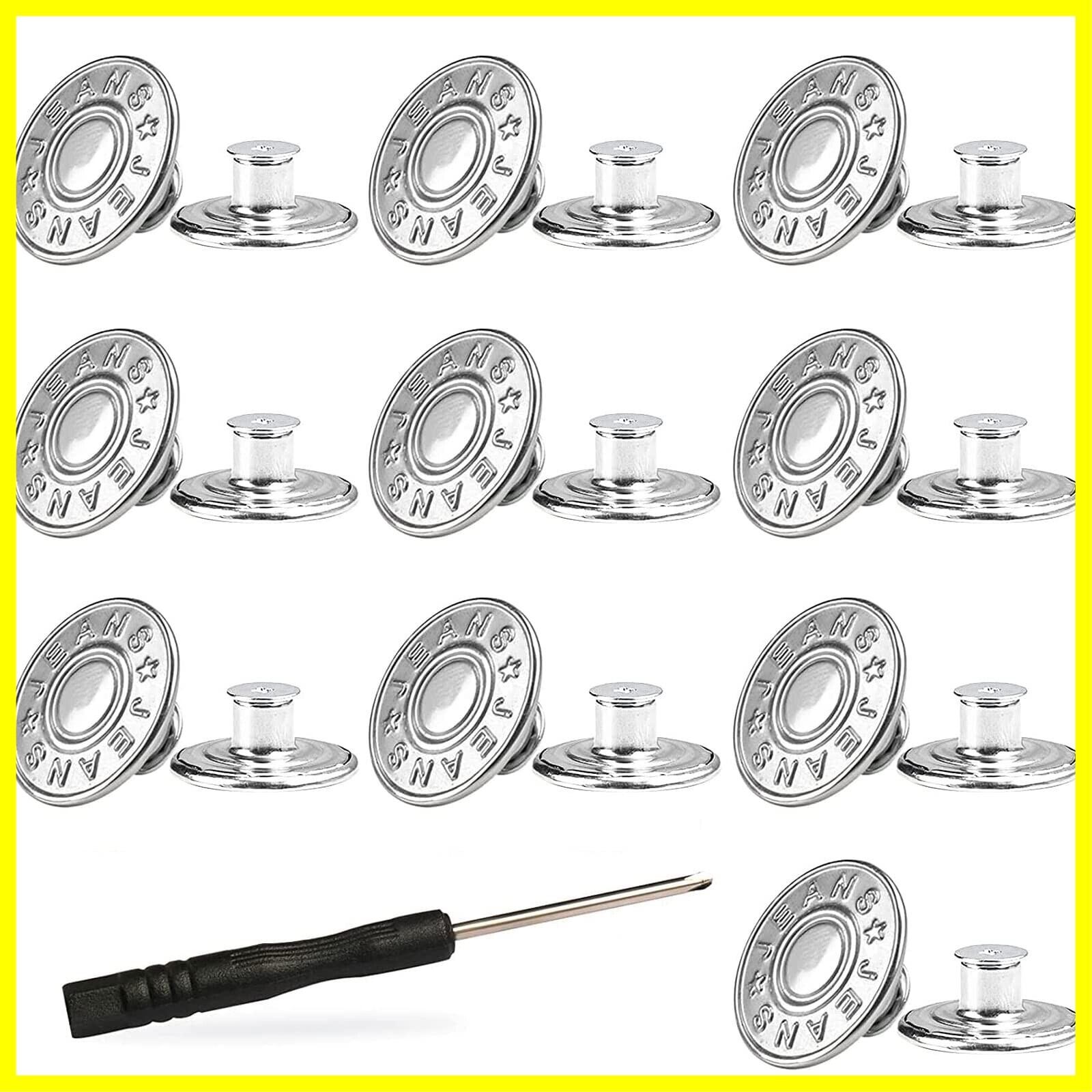 BTtime ジーンズボタン 金属ボタン 17mm 10個セット ネジ式 ジーンズ用 簡単取付け DIY 手作り 延長と縮小可能 専用ドライバー付き (シルバー)