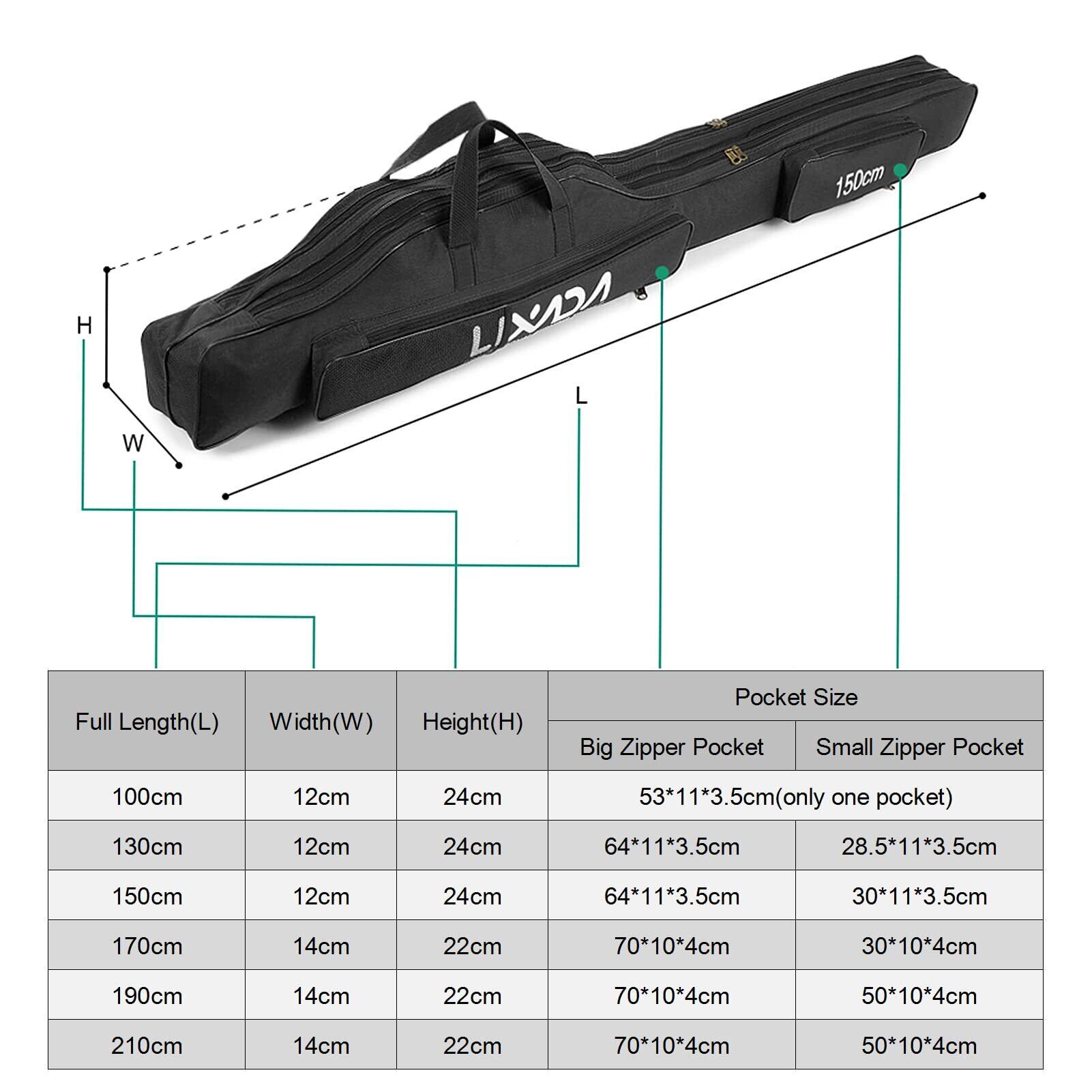 Lixada 釣り用ロッドケース 釣り用バッグ フィッシングバッグ ポータブル 釣りロッド 釣り竿 ツール収納袋ロッドケース タックルバッグ 100/130/150cm (ブラック, 190)