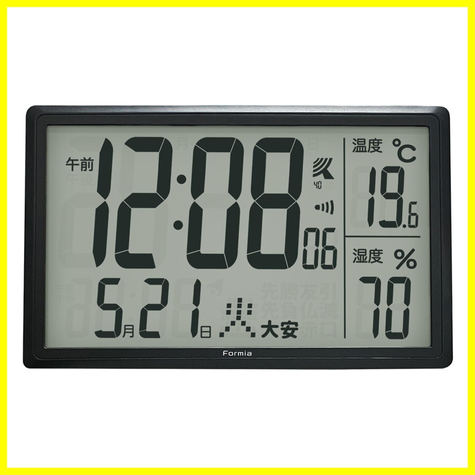 Formia(フォルミア) 電波 デジタル時計 大画面 電子カレンダー 温度計 湿度計 温湿度計 日付 時報 置き掛け兼用 卓上 保土ヶ谷電子販売 ブラック HWC-017RC