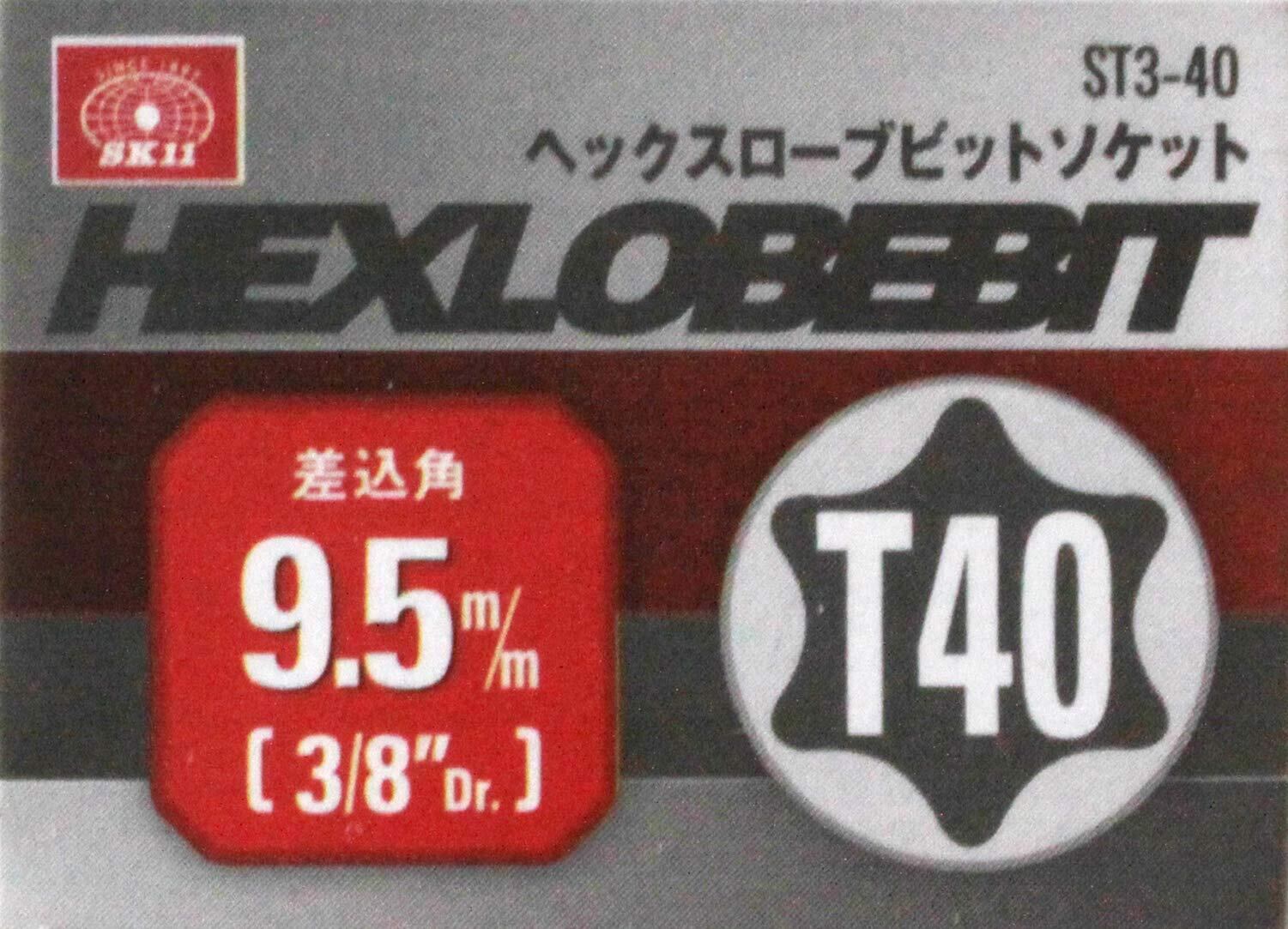 SK11(エスケー11) ヘックスローブビットソケット 差込角 9.5mm (3/8インチ) T40 ST3-40