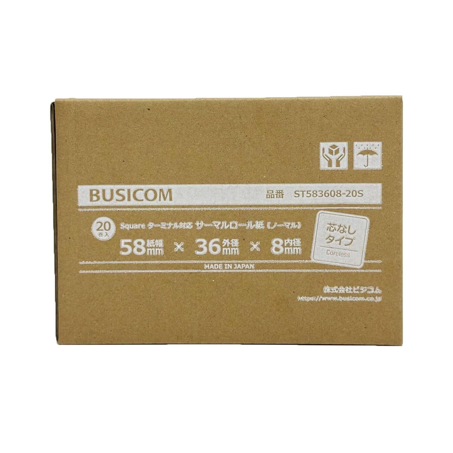 ビジコム純正 国産 感熱レジロール紙 58mm幅×外径36mm×内径8mm (芯なし) ノーマル 20巻 キャッシュレス決済端末向け ST583608-20S