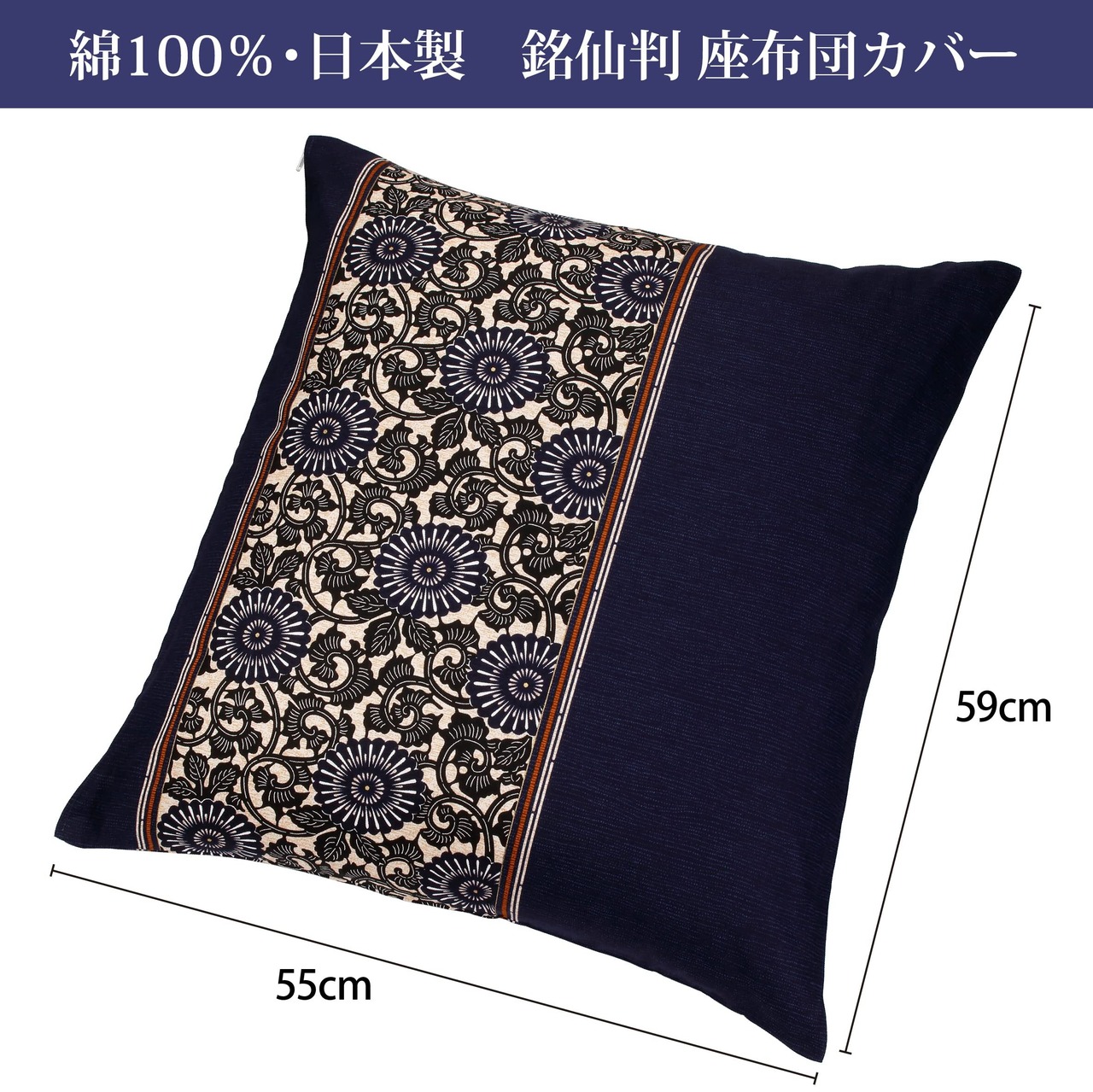 nishikawa 【 西川 】座布団カバー 銘仙判(55X59cm) 洗える 菊唐草模様 日本製 ブルー PG02083093