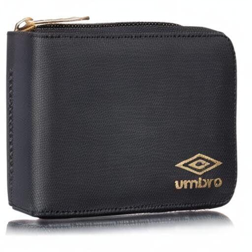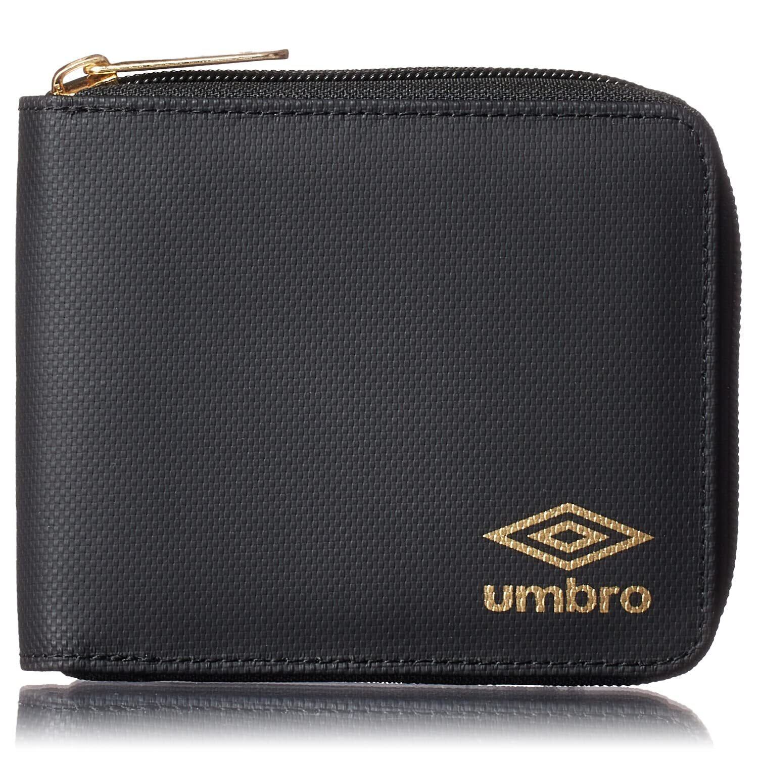 [アンブロ] メンズ 二つ折り 折財布ラウンドファスナー (Black/Gold)