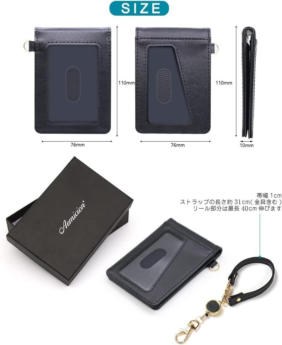 [Aemicion] 定期入れ パスケース パス入れ ICカードケース カードケース リール付き ストラップ付き 革 レザー 二面 バタフライタイプ 4ポケット 2枚使用可能 メンズ レディース 人気 通勤 通学
