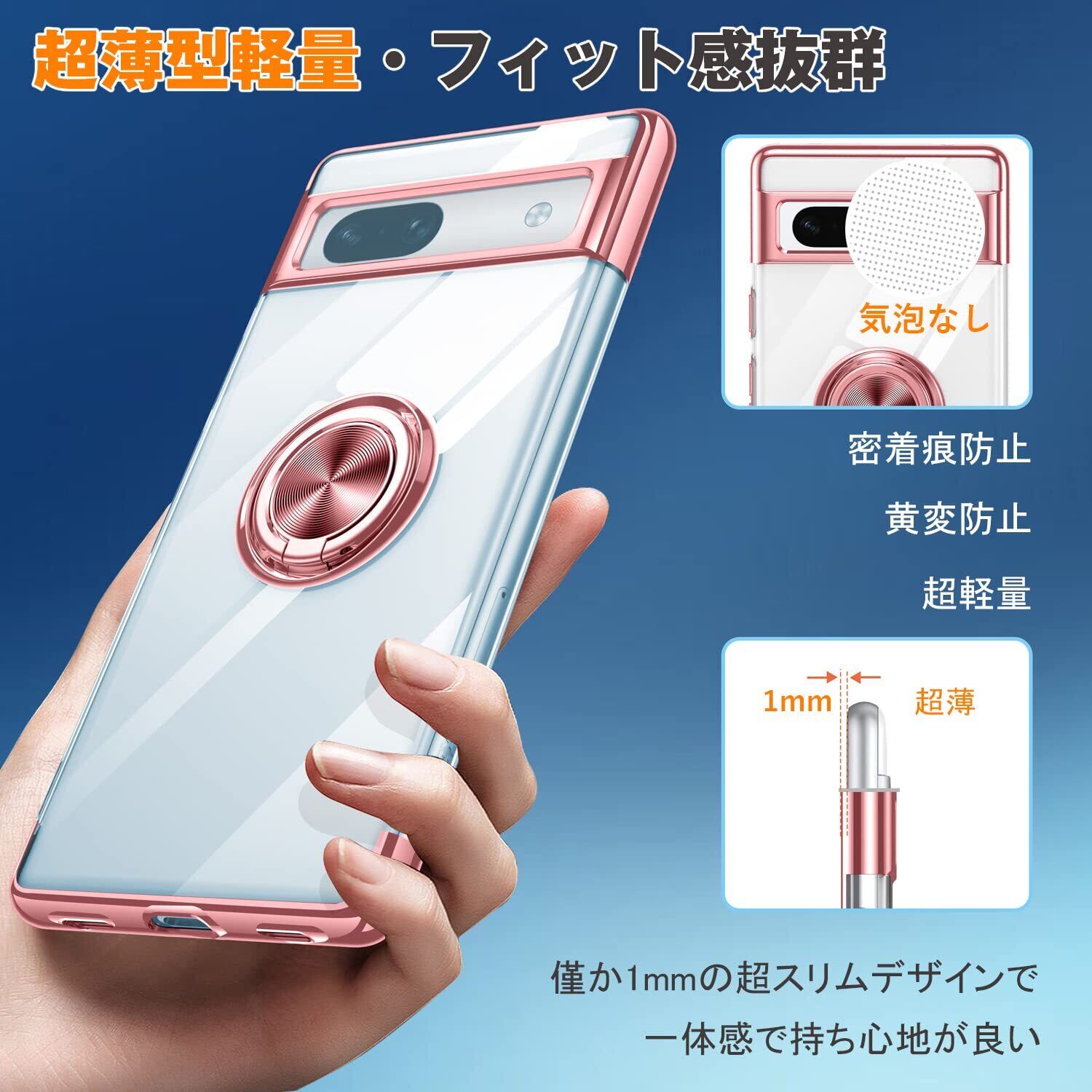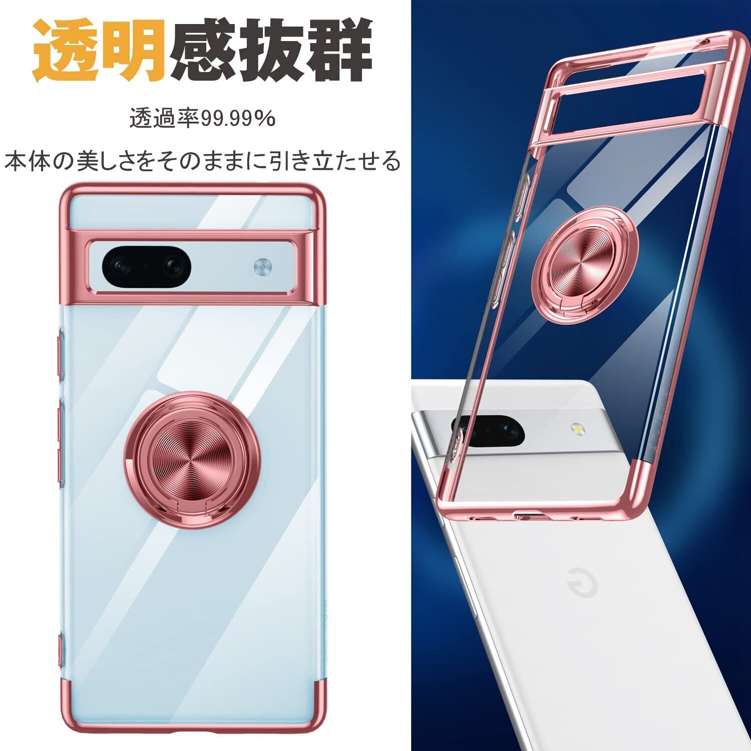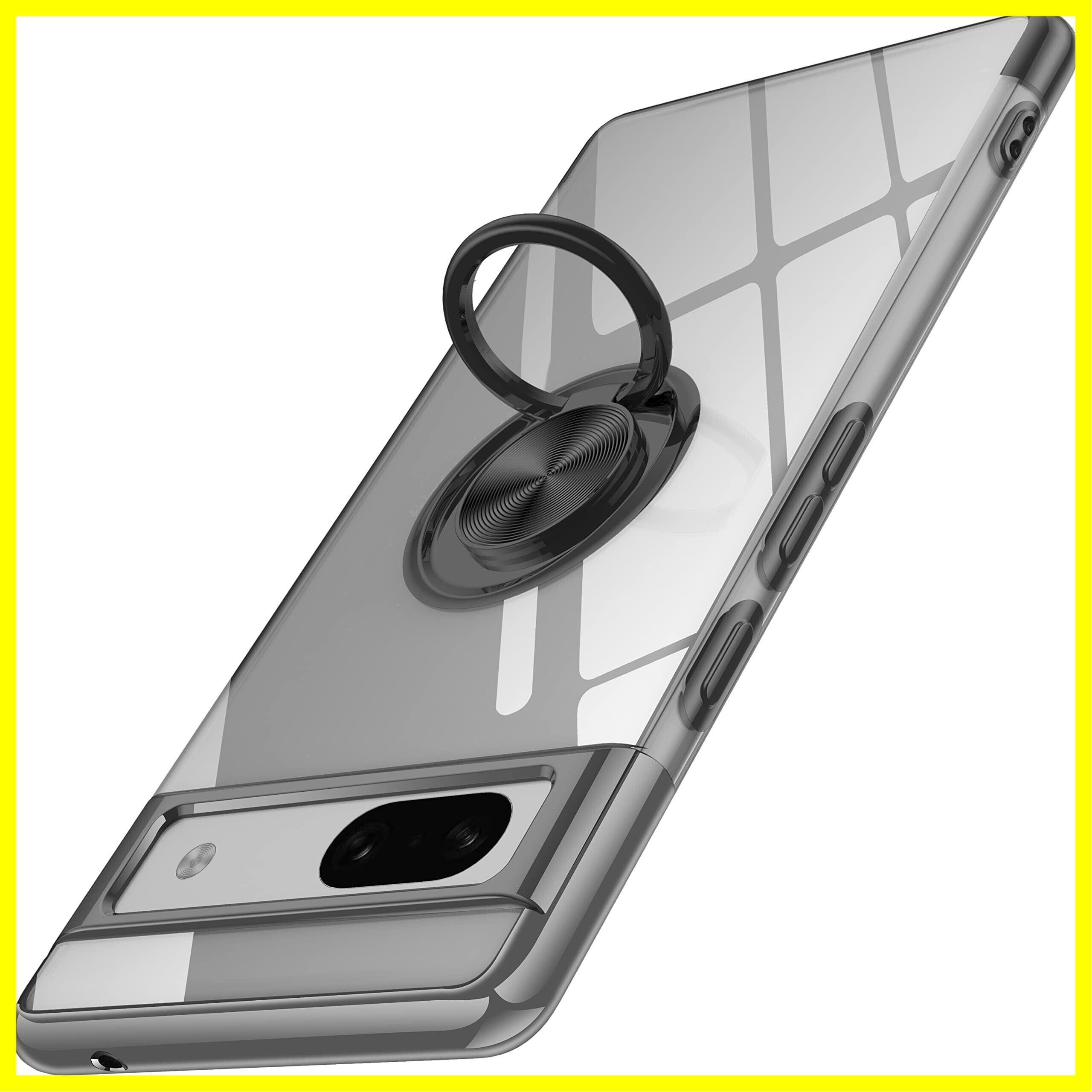Google Pixel 7a 用 ケース クリア リング付き ピクセル 7a カバー 透明 おしゃれ OURJOY スマホケース メッキ加工 ソフトケース 耐衝撃 軽量 薄型 ストラップホール付き スタンド機能 車載ホルダー対応 携帯ケース・ブラック