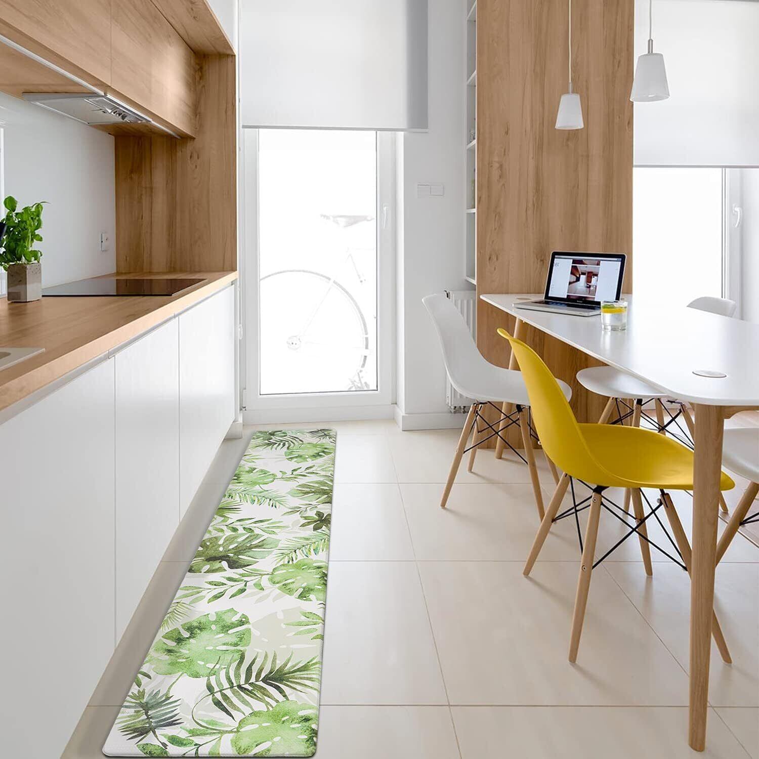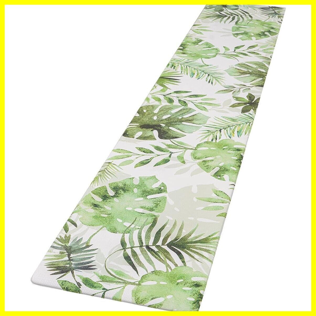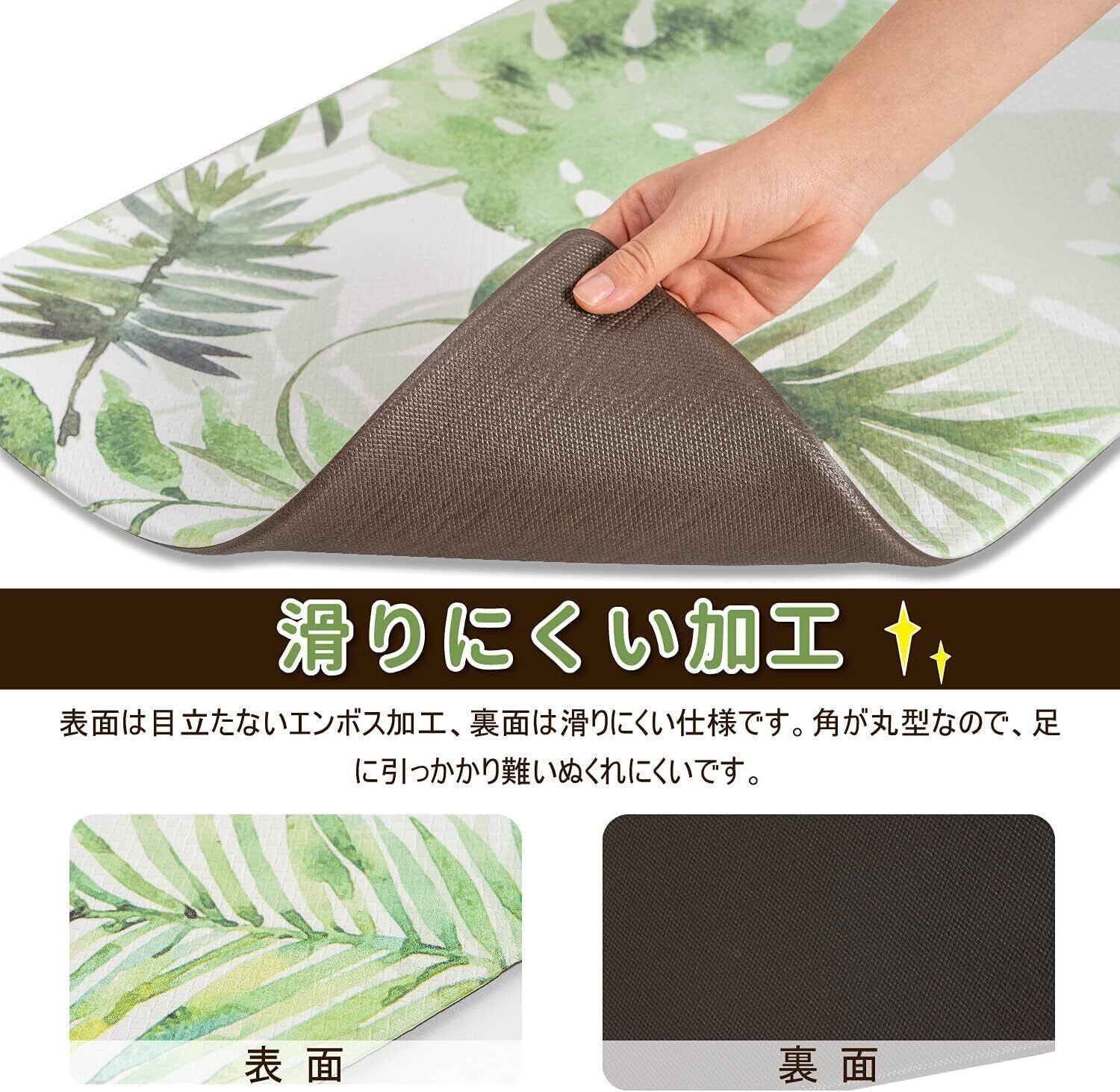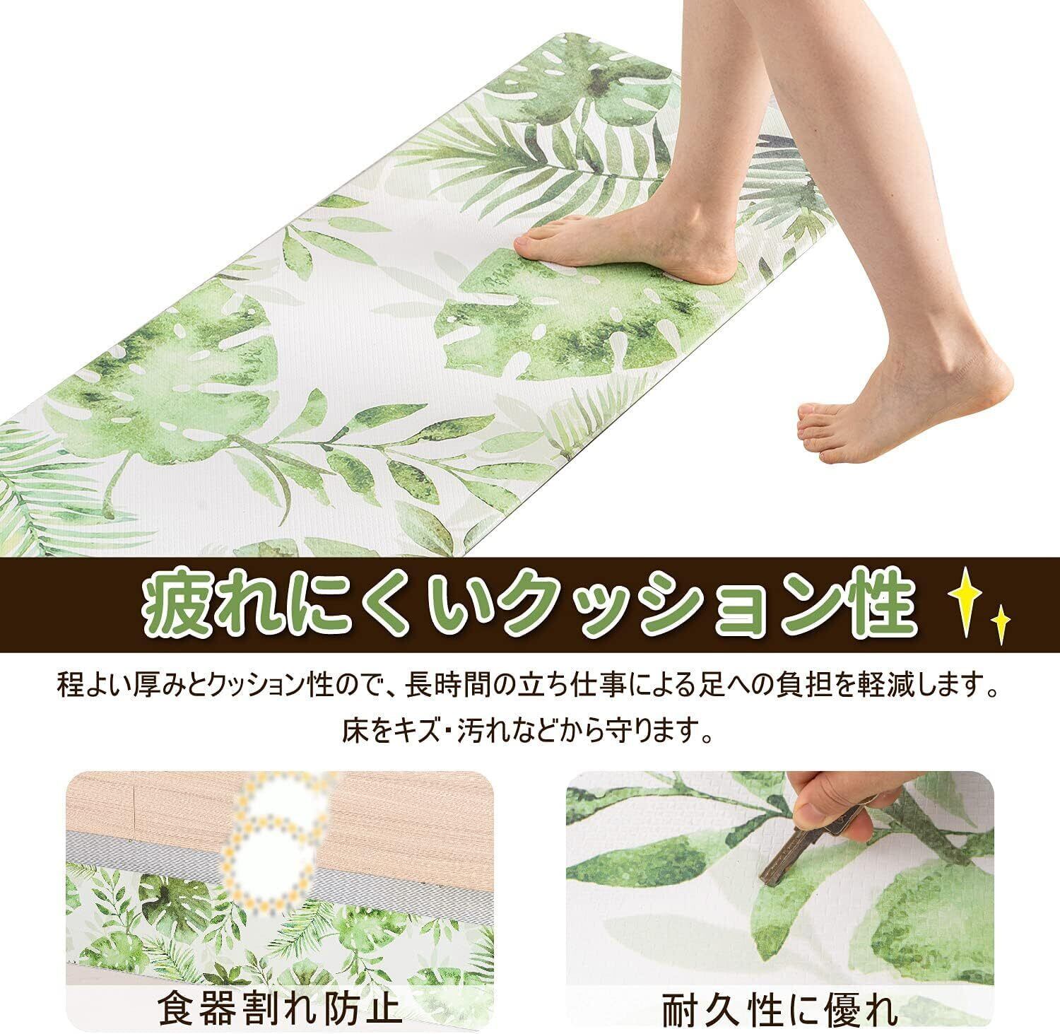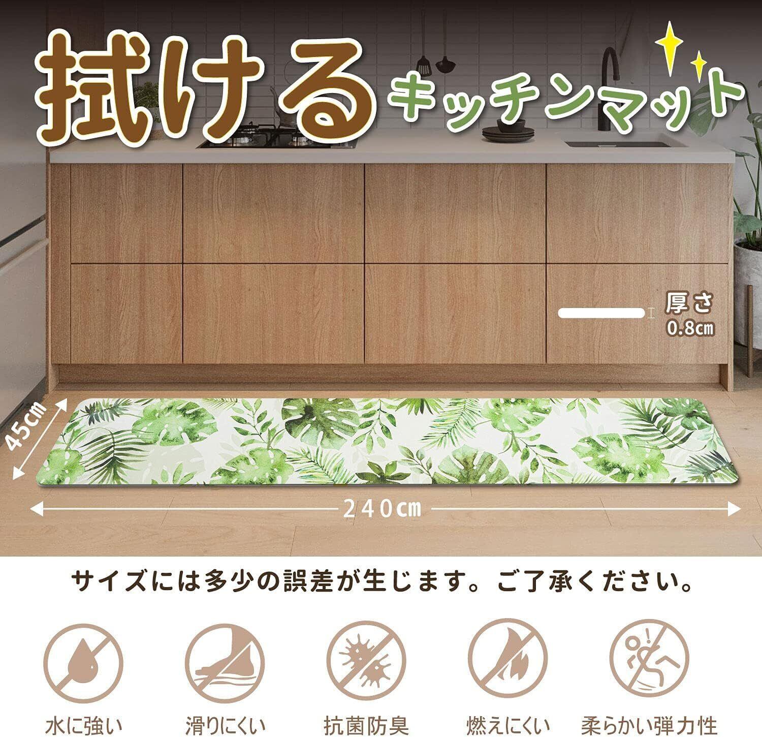 Ashmore キッチンマット 拭ける台所マ ット ずれない PVCロング床マット 撥水 おしゃれ 滑り止め 抗菌 防炎 厚さ10mm お手入れ簡単 約45cm*240cm モンステラ柄