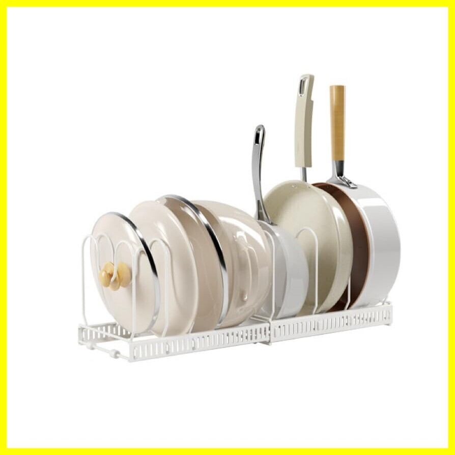【組み立て簡単】:鍋のサイズに合わせて、サポートフレームを本体のスロットに差し込むとこていできます。組み立てはとても簡単です。サポートフレーム10本が付属しており、フライパン、鍋や蓋などのサイズに合わせて調整可能です。最大9個のフライパンを収納できます。
