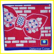 『名探偵コナン』に登場する発明家・阿笠博士が開発した眠りの小五郎必須アイテム「蝶ネクタイ型変声機」をモチーフにしたミニタオルです。