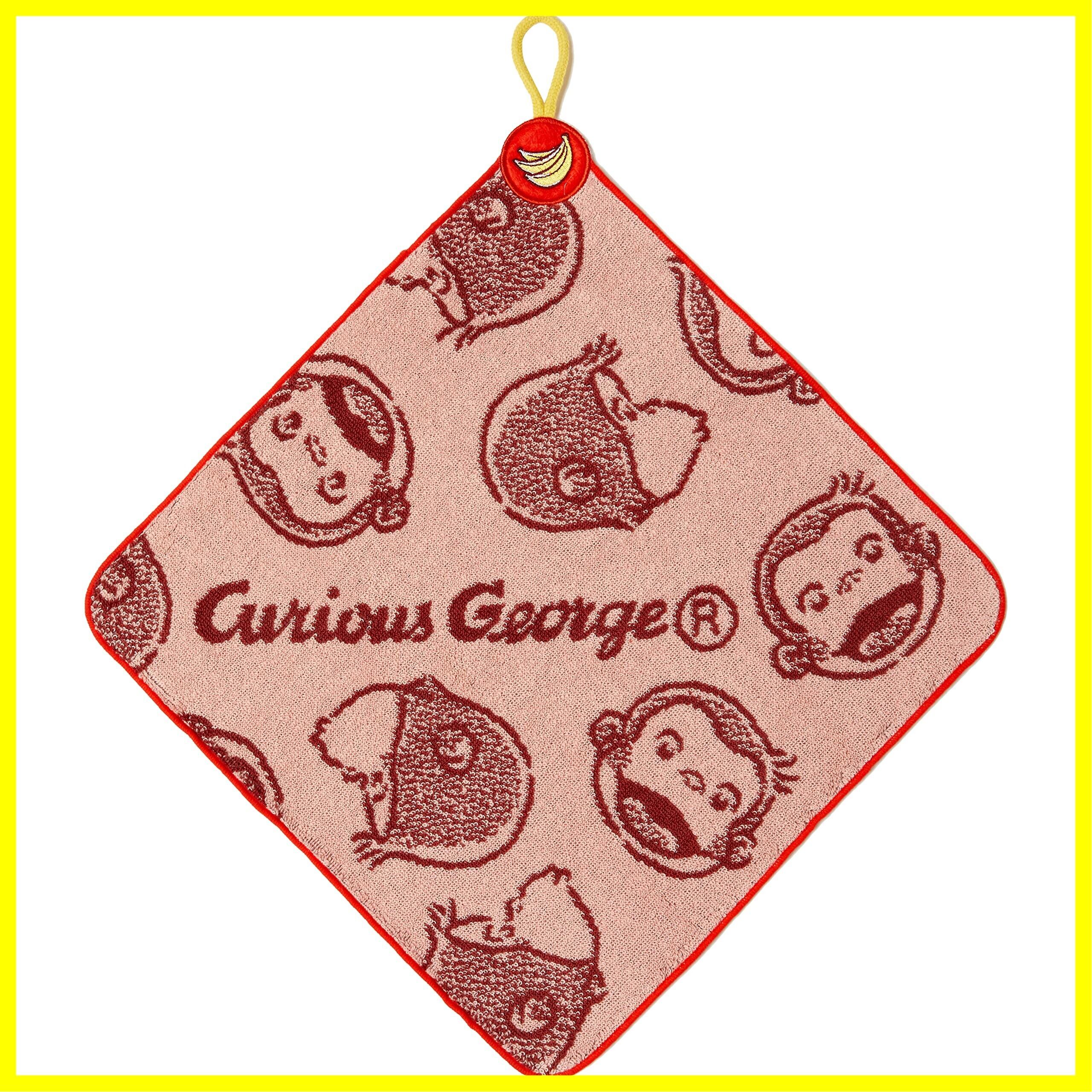 おさるのジョージ Curious George フェイス ウォッシュタオル レッド ループ付き リボーンコットン フルフィーコットン 68-2071080