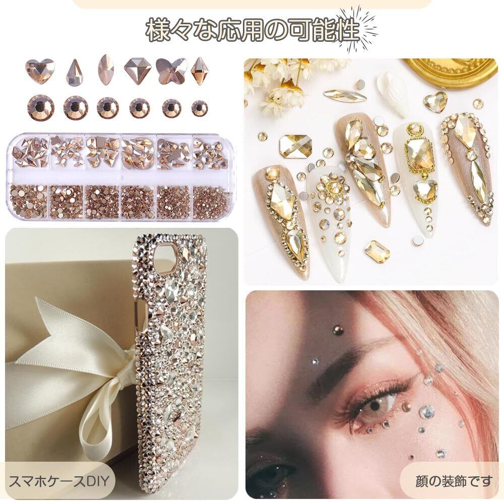[Lismyakey ネイルアートパーツ ネイルラインストーン ラインストーン ネイル ストーン 3D ひし形 ハート 長方形 丸 ネイルアートパーツ ネイルデコレーション ハンドメイド素材 手芸パーツ DIY ネイルを飾て ピンセット2本付き (シャンパン)]