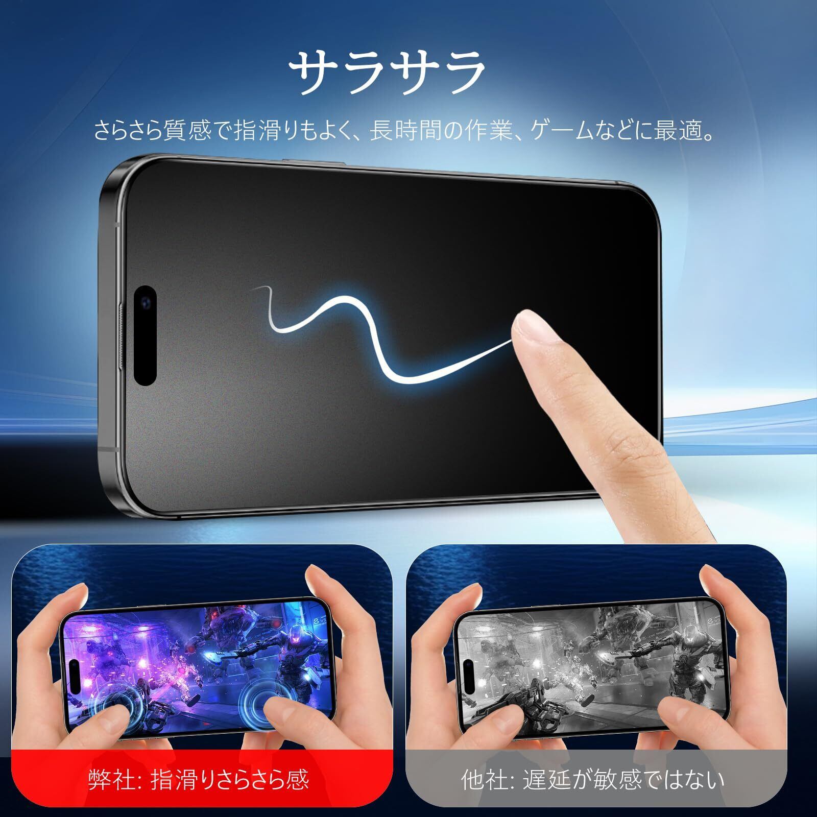 【アンチグレア・ゲームに最適】 独自の反射防止コーティングにより、太陽光や蛍光灯の映り込みを軽減し、目に優しく長時間の使用でも疲れにくい設計。さらに、ナノエッチング技術で操作面がさらさら&高感度。指が吸いつくような滑らかさで、ゲームプレイ中も快適なタッチを実現します。ゲームユーザーにも好評の高性能フィルムです。