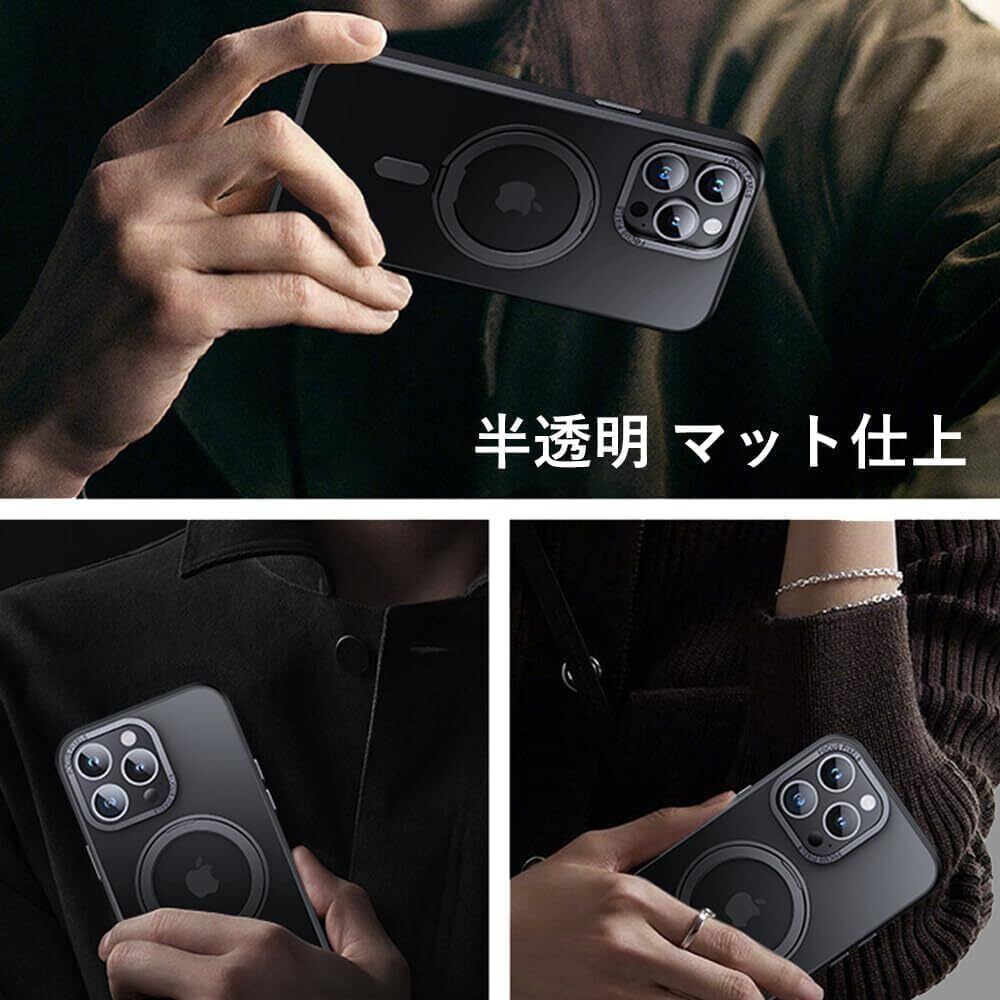 iPhone 11 適用 ケース Magsafe対応 アイフォン11 カバー 360°回転スタンド Uovon スマホケース アイホン 11 携帯ケース ワイヤレス充電 車載ホルダー 対応 ストラップ穴付き 半透明 指紋防止 黄变防止 ・ ブラック