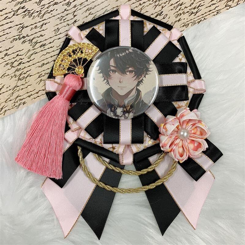 ジートリガー(G triger) 和風痛ロゼット 飾りロゼット 缶バッチロゼット 多種類 パーツ チェーン リボン 痛バッグ飾り 推し ハンドメイド DIY ロゼット飾り キャラクター ピンク