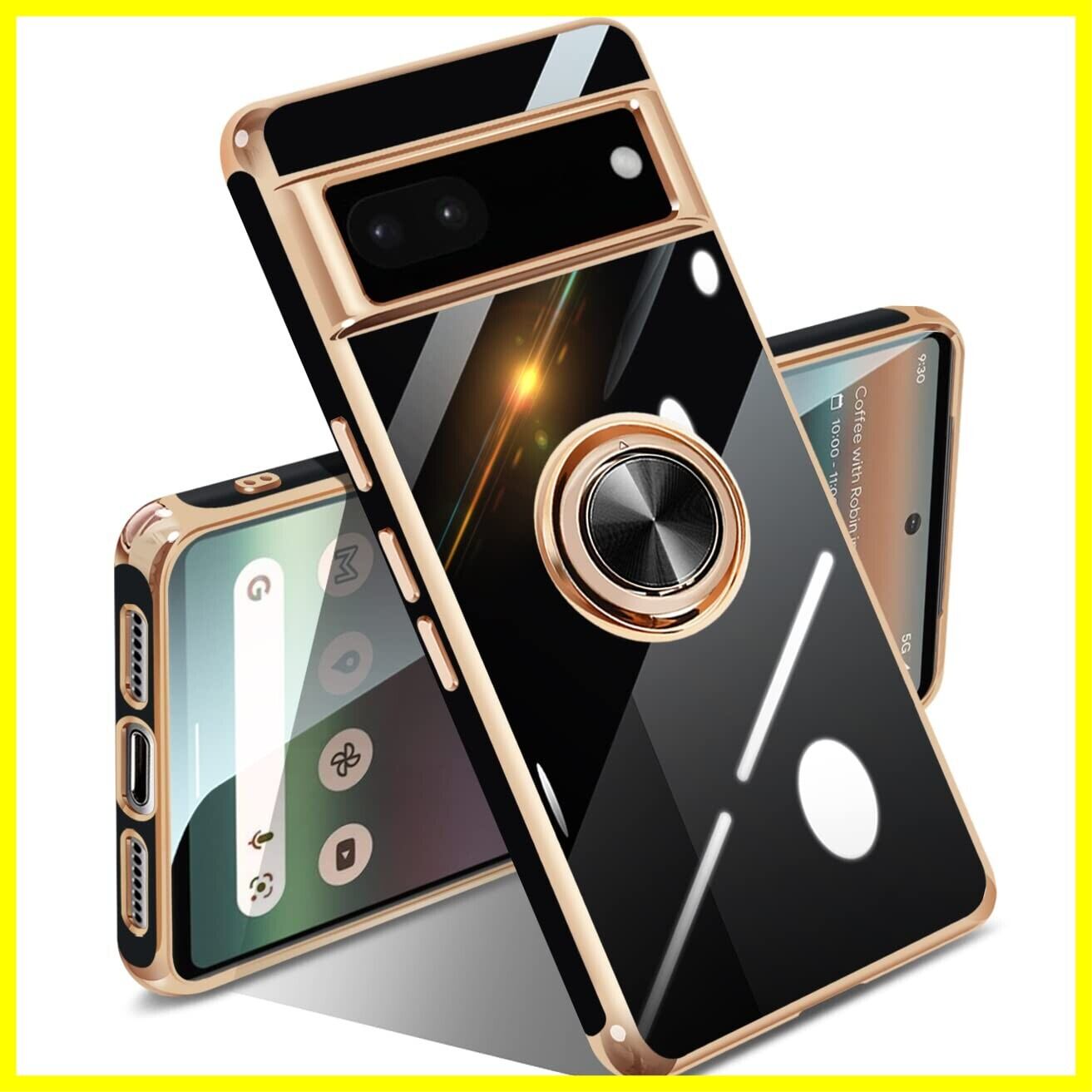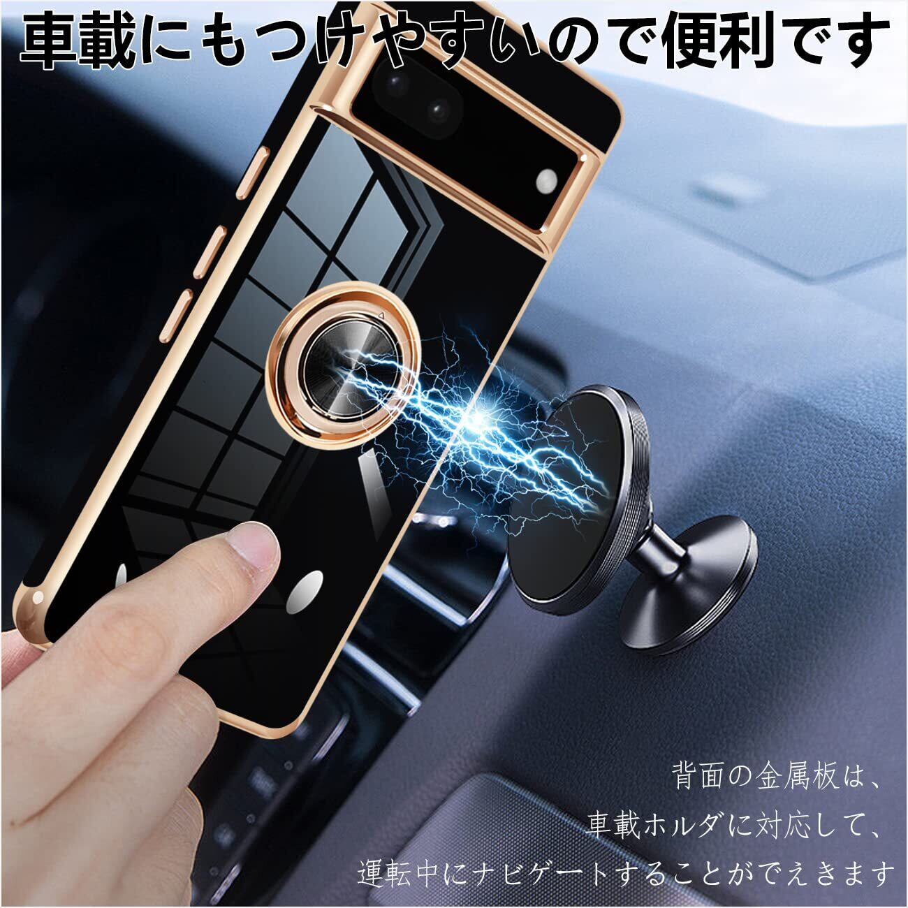 Google Pixel 6a ケース リング付き リング 米軍MIL規格 人気 耐衝撃 ピクセル6a カバー 携帯カバー TPU 軽量 スタンド機能 車載ホルダー対応 360°回転 指紋防止(ブラック)