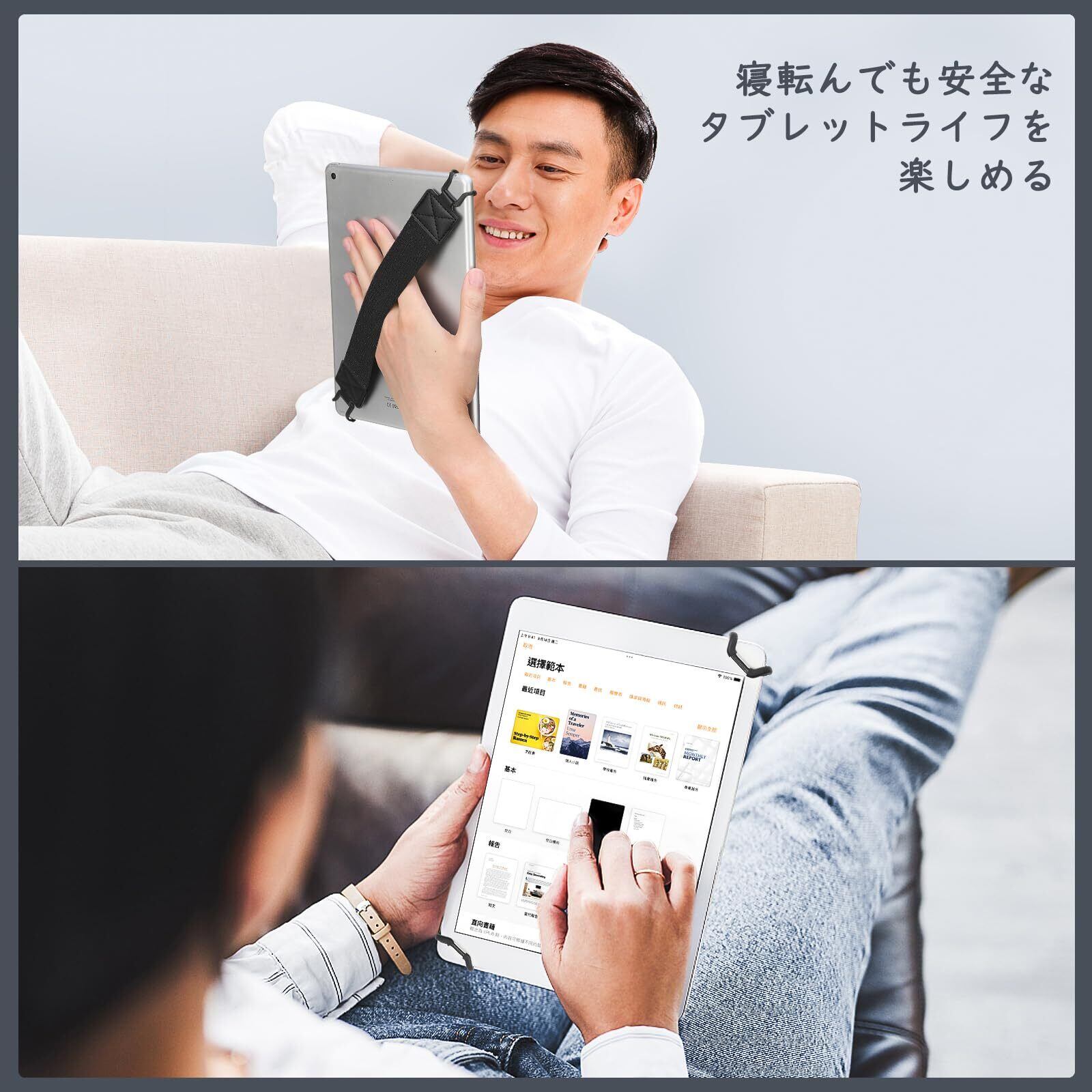 TiMOVO タブレットバンド 2個入り タブレットPC用安全ハンドストラップ 片手持ち 落下防止 取り外せる 9-11インチ対応-ipad 第11/10/9/8/7世代、iPad Air 7/6/5/4、iPad Pro 11、Fire HD 10、Redmi Pad SE 8.7/Pad 2 黒Band+ブラック