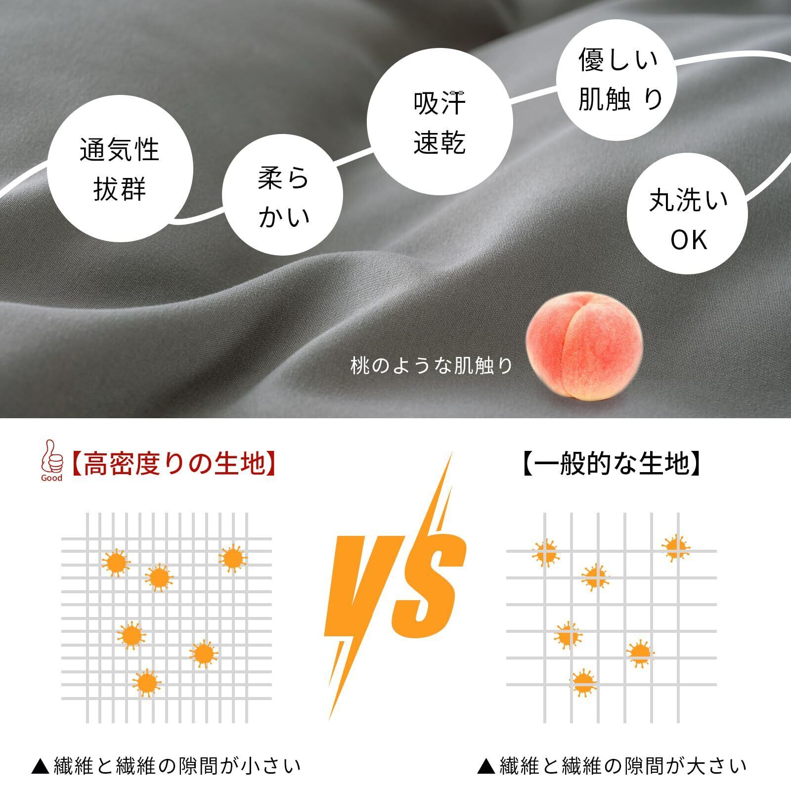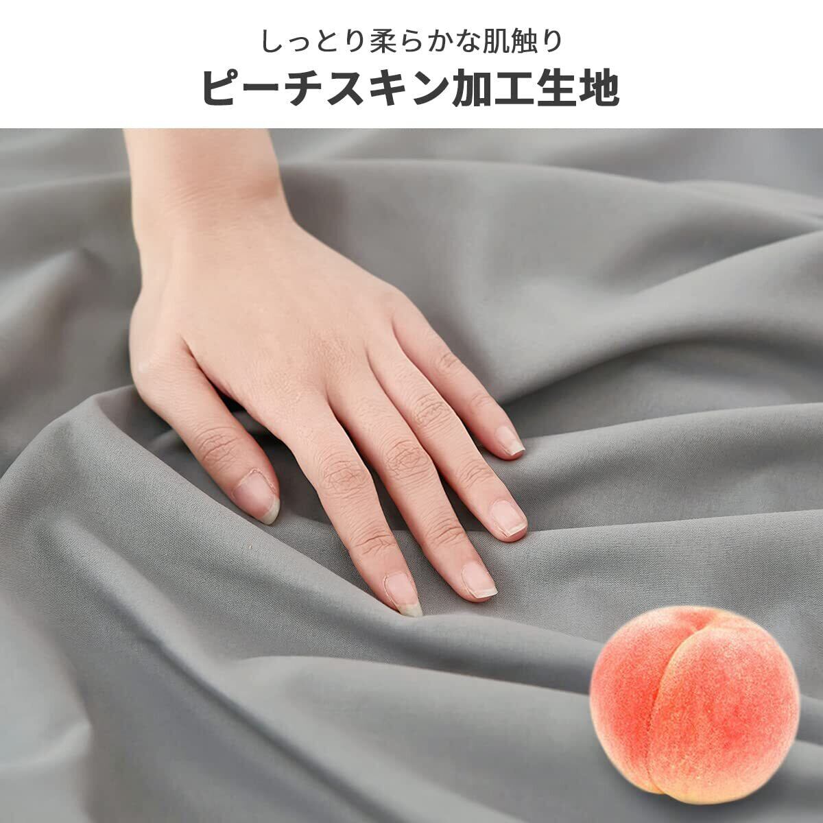 <ふわふわ柔らかな肌触り>ポリエステル100%。生地の表面を毛羽立たせる加工を施したピーチスキン素材で、触れた瞬間にサラサラ、ふわふわっとした柔らかい肌触りに。まるで綿100%掛け布団カバーのような心地よさ。