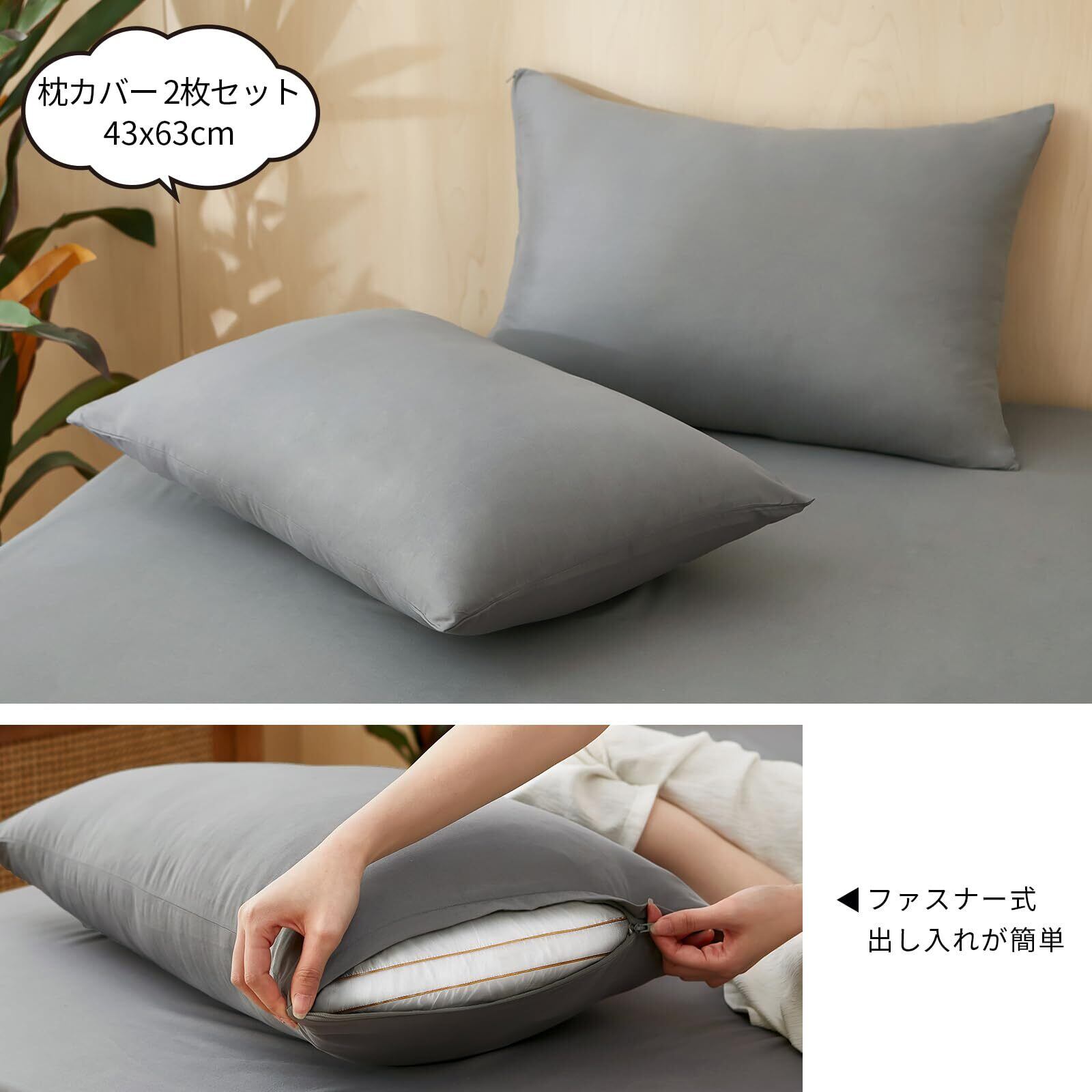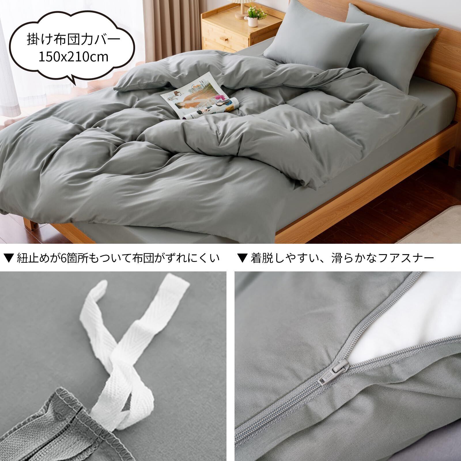 AZRA 布団カバー シングル 3点セット シーツセット 掛け布団カバーセット 寝具カバーセット 洋式ベッド・和式布団兼用 ベッドシーツ 枕カバー2枚 ピーチスキン加工 肌ざわり 洗い替え速乾タイプ グレー