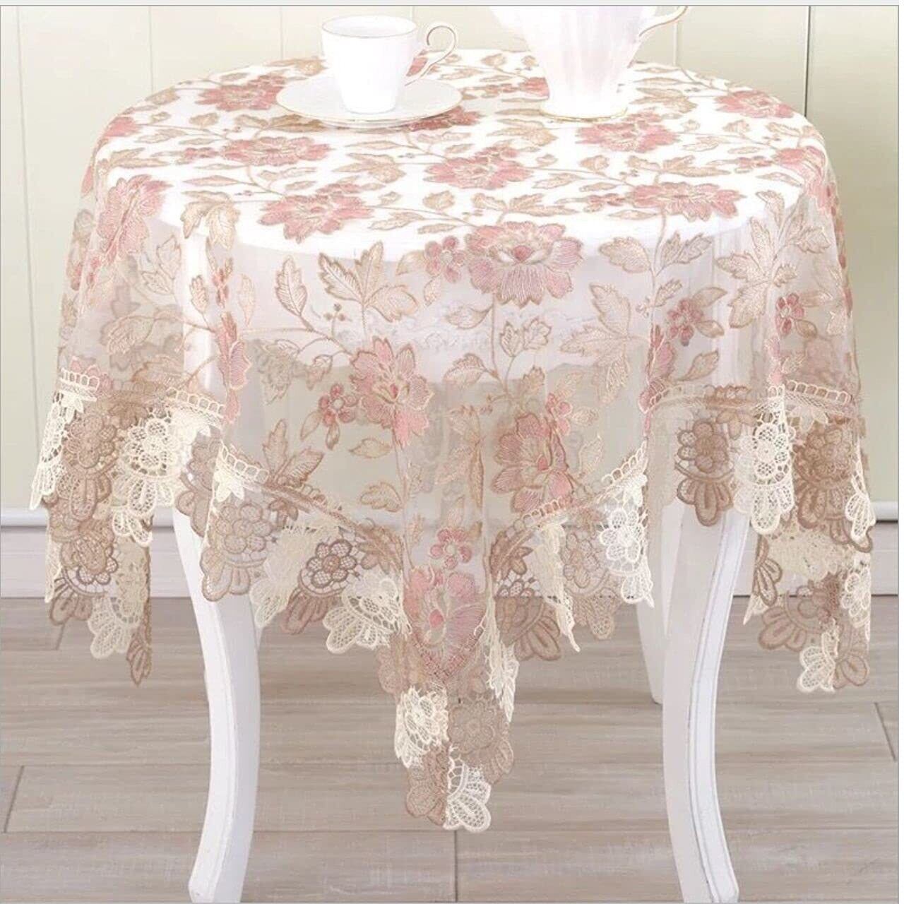 テーブルクロス‐正方形 北欧風‐レース‐透かし花柄 サイドテーブル‐丸テーブル センター重ね‐敷物‐マルチカバー‐家電カバー SweetBaku (60×60ピンク)