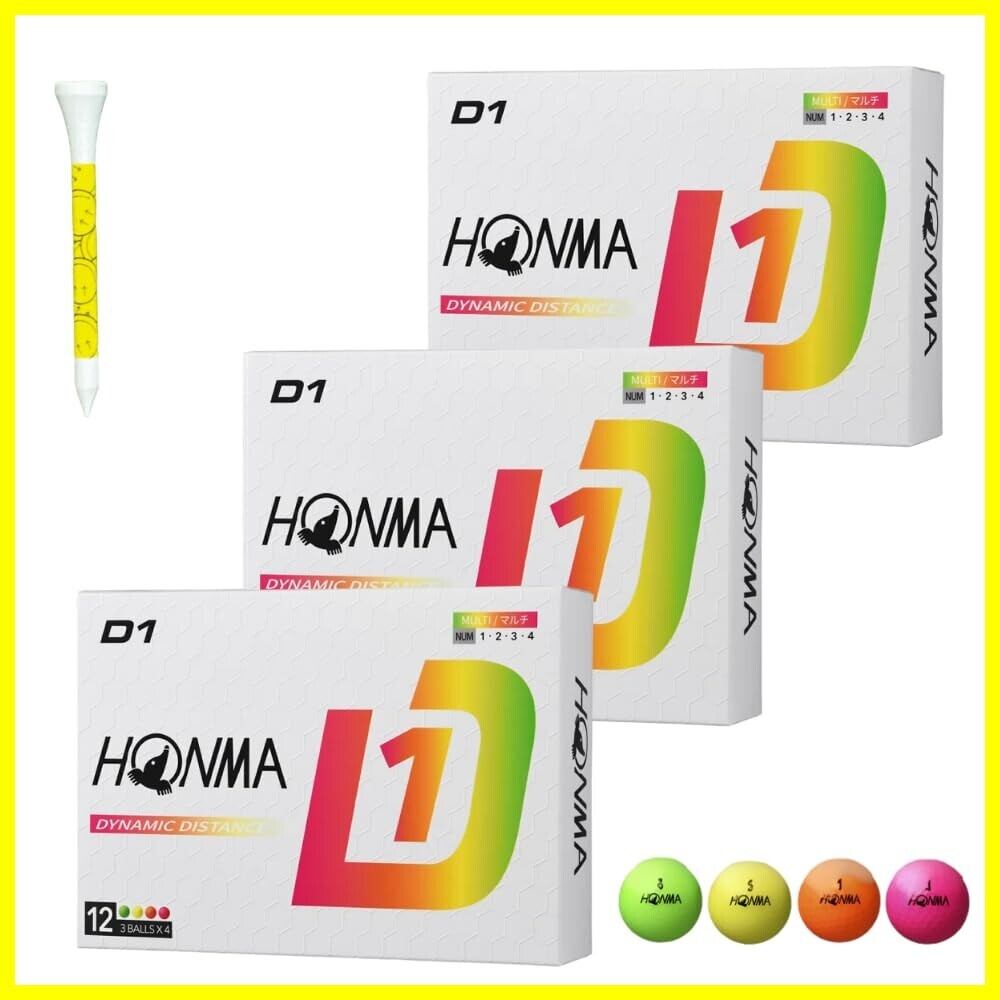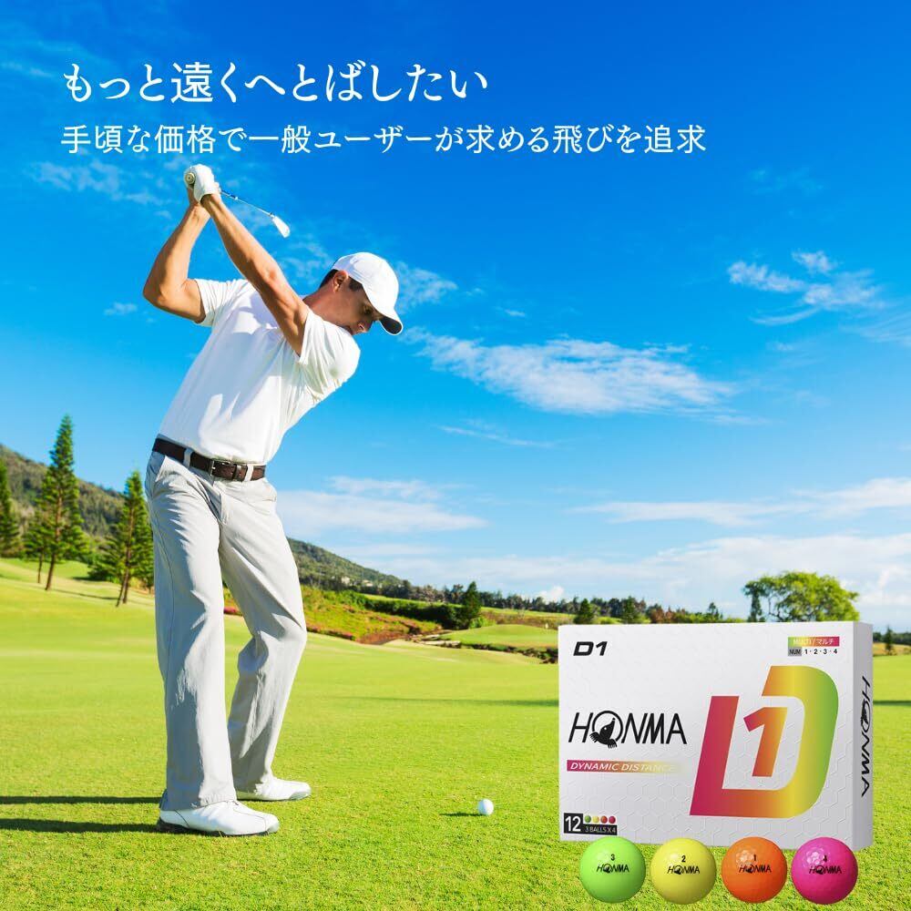 本間ゴルフ D1 ゴルフボール 2024年モデル BT2401 マルチカラー( タイプ:ディスタンス 飛距離:かなり飛ぶ ドライバースピン:かなり少ない フィーリング:ソフト【3ダース 36球 】 プリントカラーティ付