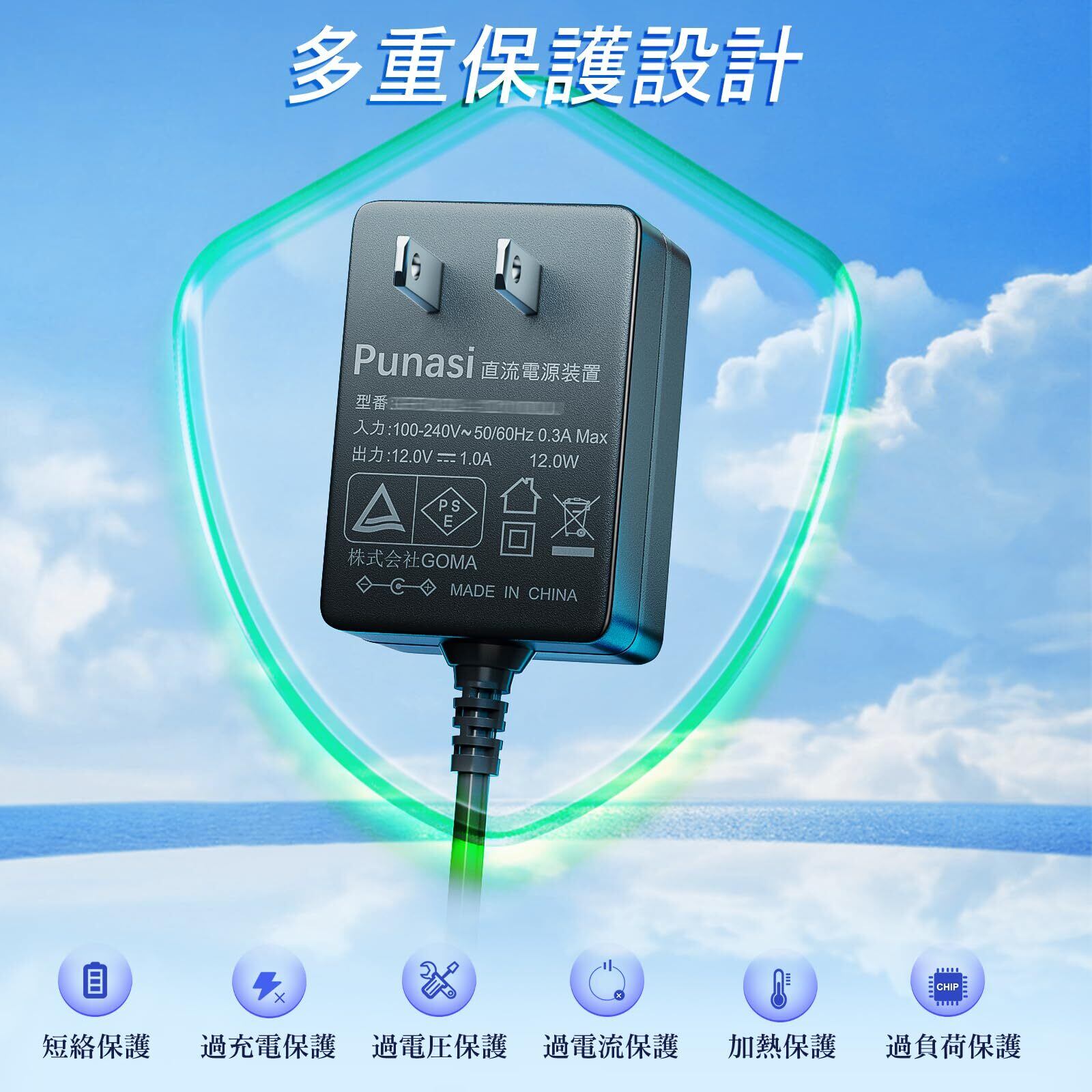 製品特徴:小型で使いやすい12VスイッチングACアダプタです。電気用品安全法に基づく表示(PSE)のある商品です。