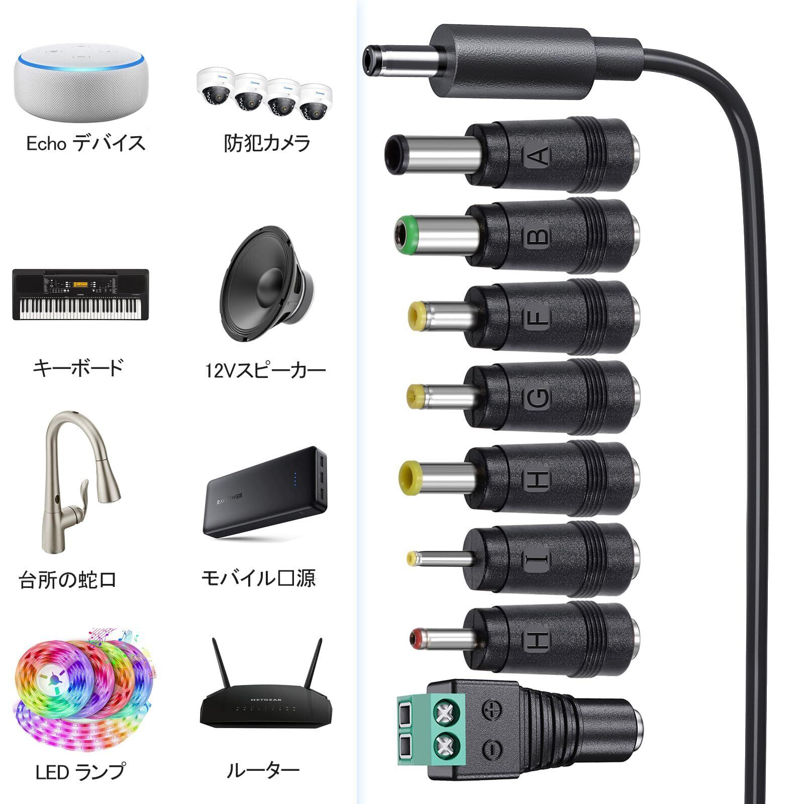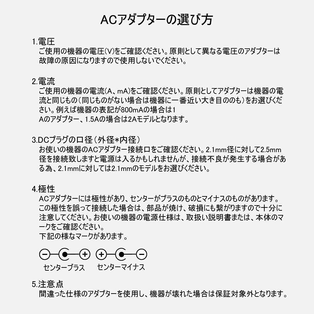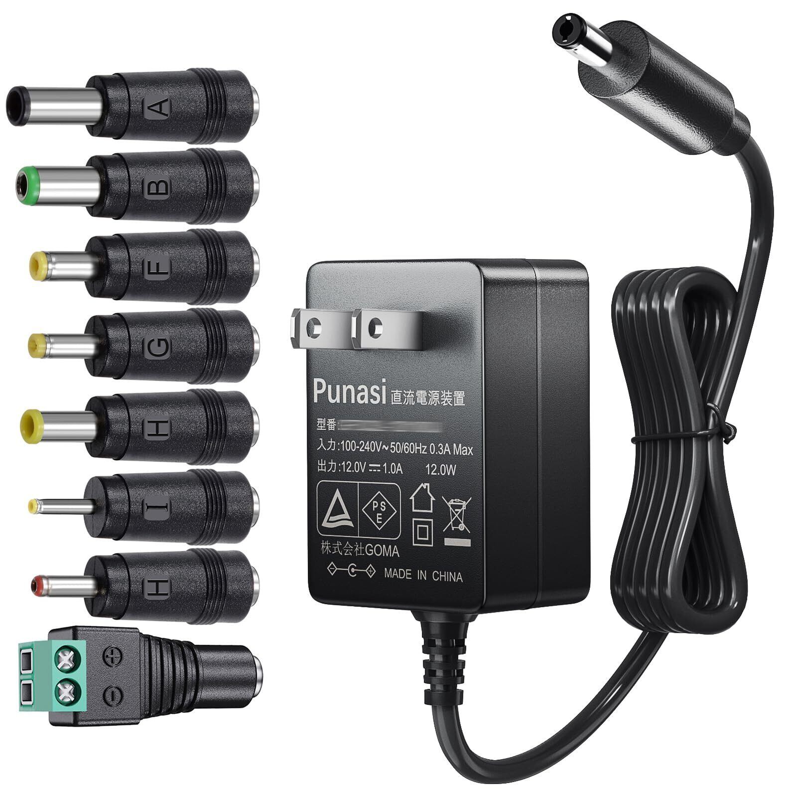 12v 1a ACアダプター dc12v acアダプター PSE認証 変換8種セット Punasi acアダプター 12v 汎用 出力プラグ5.5*2.1mm コネクタの極性:インナープラス(+) アウターマイナス(-)