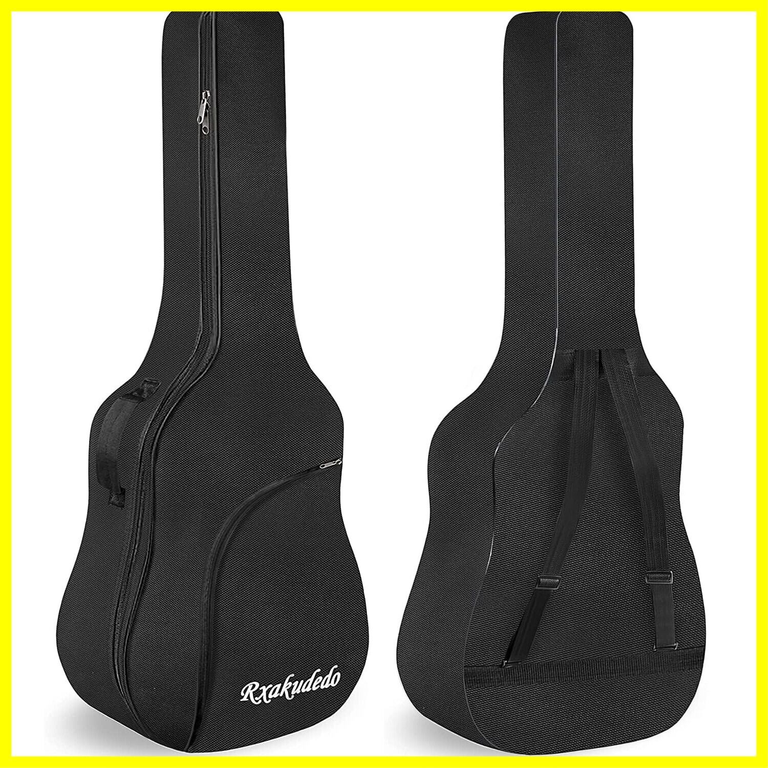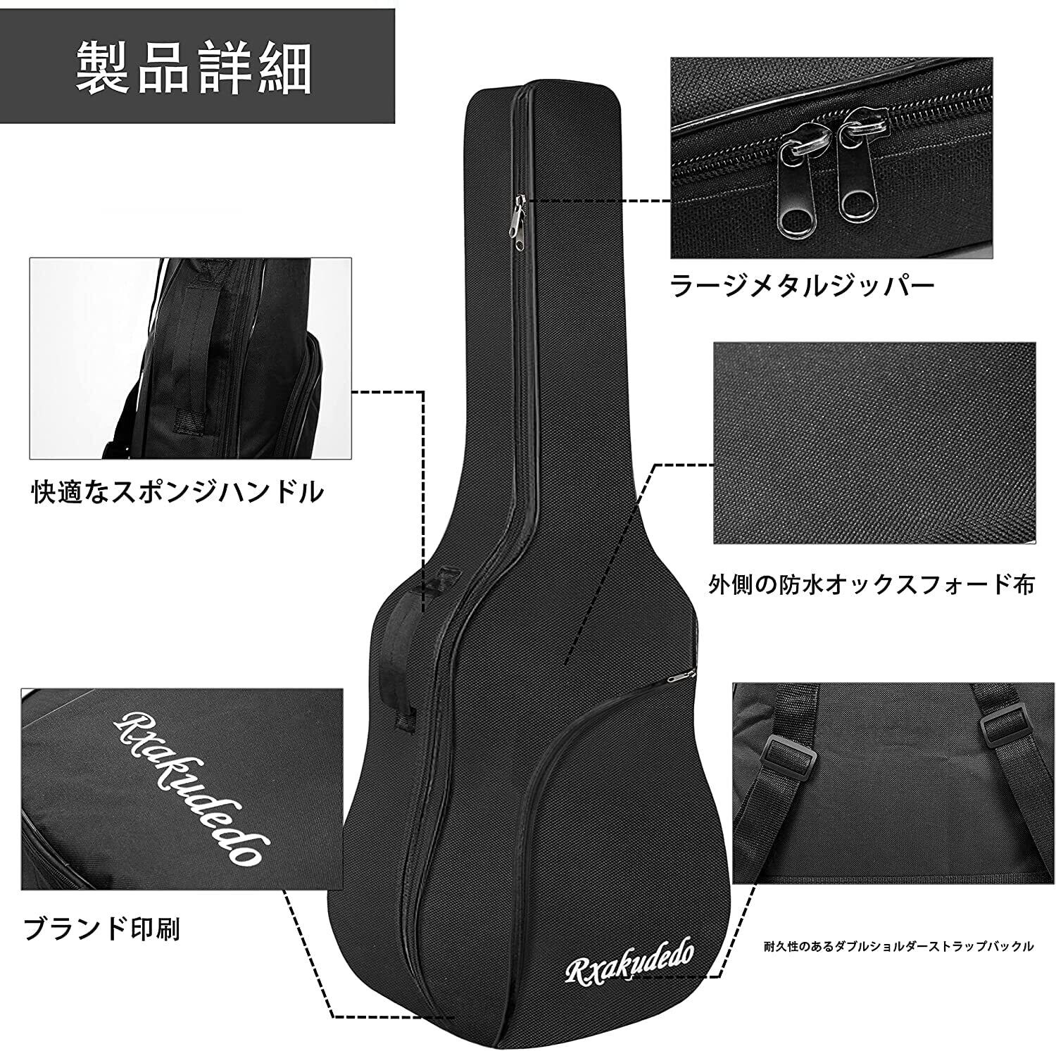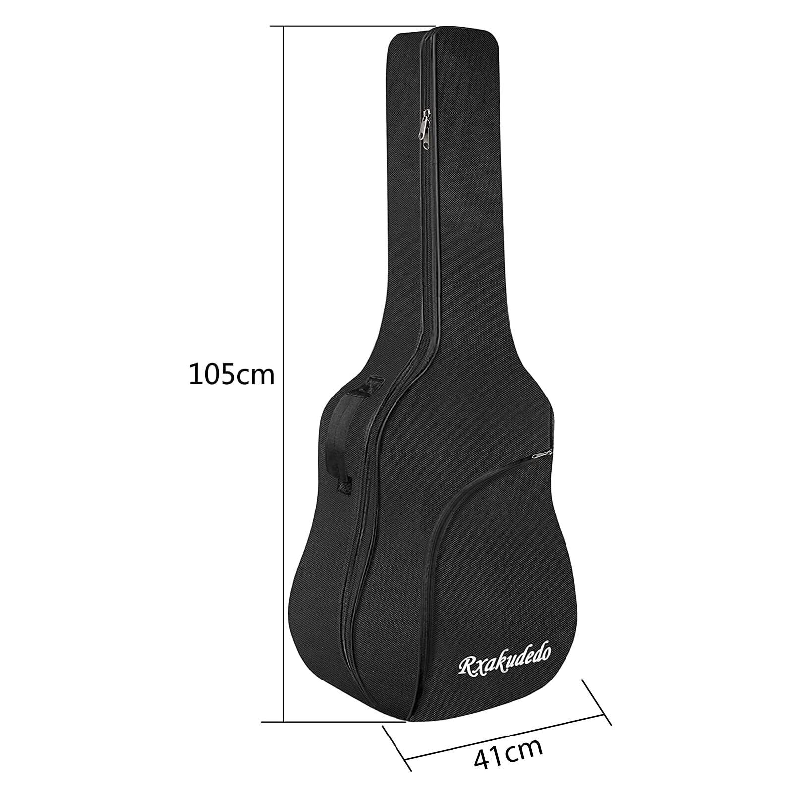 Rxakudedo ギターバック アコースティックギター用 ギグバッグ ソフトケース 40/41インチ(101.6cm/104.2cm) 2Way 背負い・手提げ両用 ポケット付き 防水 オックスフォード布 軽量 ブラック 107×42×14cm