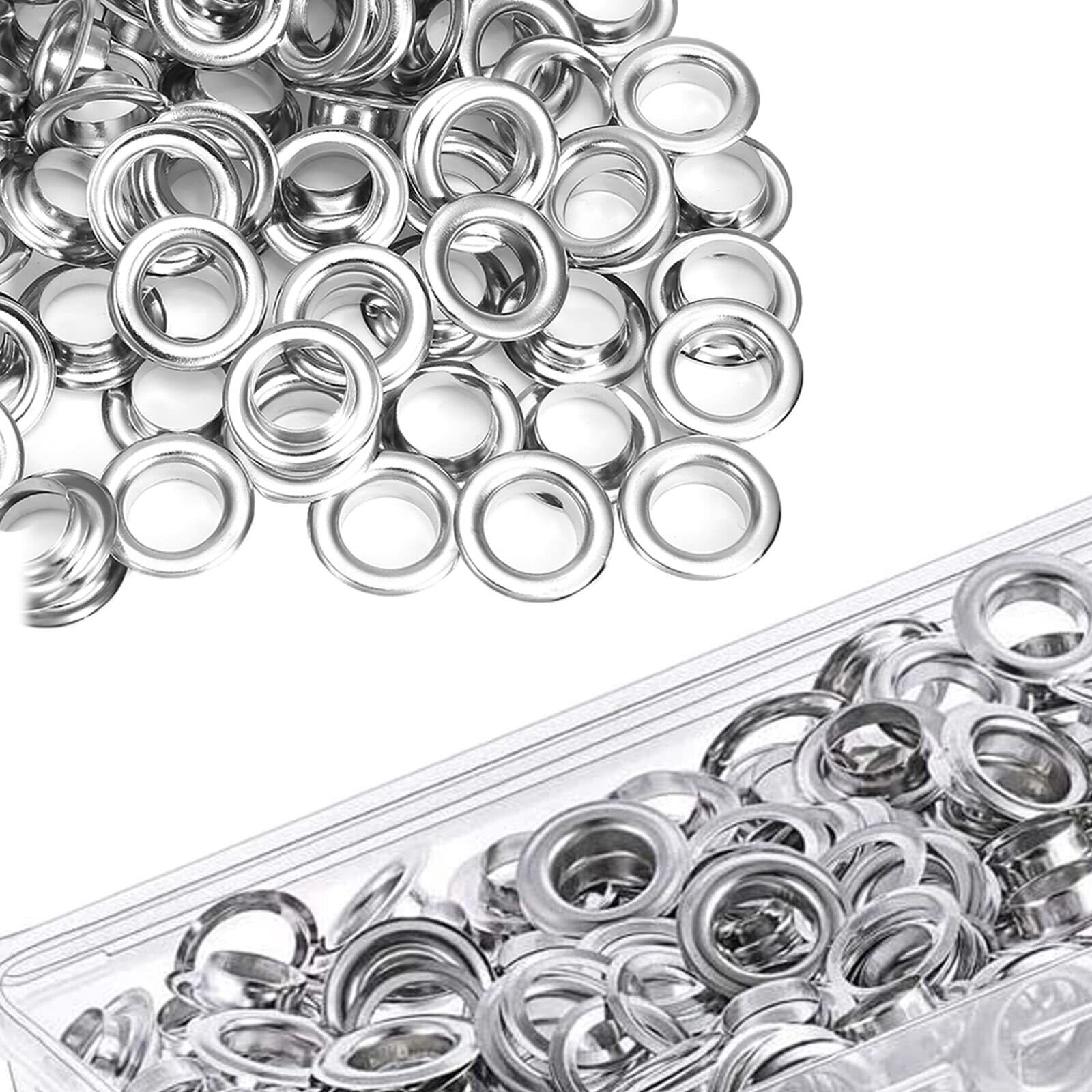 商品:100組ハトメセット、手芸材料セット。 サイズ:内径12mm 型番:1000# 色:シルバー