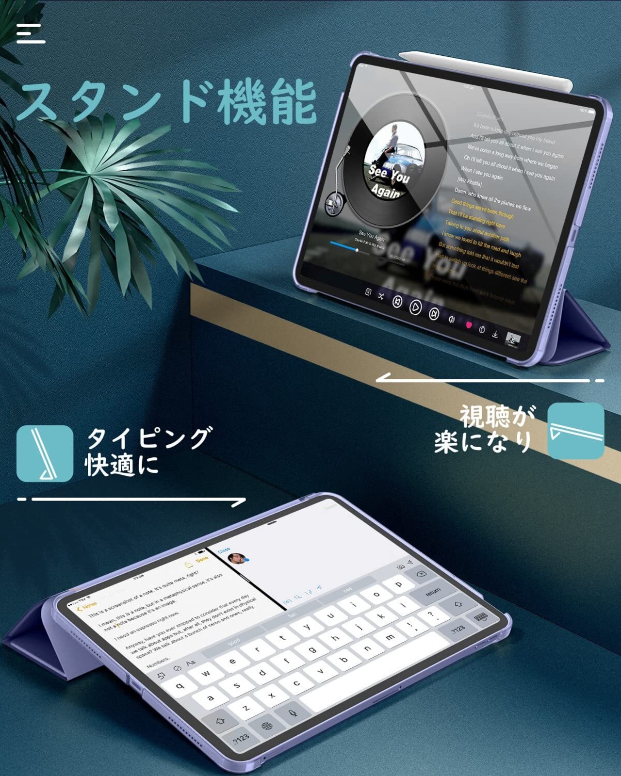 「三つ折り・スタンド機能」 カバーを折れる仕様にデザインして、折巻きしてスタンドになれて、二つの置く角度調整できて、両手解放で動画観賞や、タイピング、ゲームなども快適にご利用頂けます。
