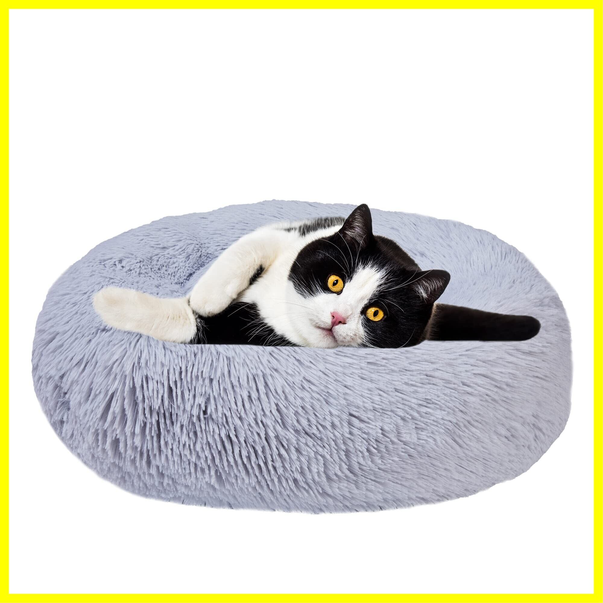 Aurako 50cm 犬ベッド 猫ベッド ふわふわ 丸型 クッション ドーナツペットベッド ぐっすり眠る 猫用 小型犬用 もこもこ 暖かい 滑り止め 防寒 寒さ対策 洗濯可能 子犬 猫用 サイズ選択可 ライトグレー