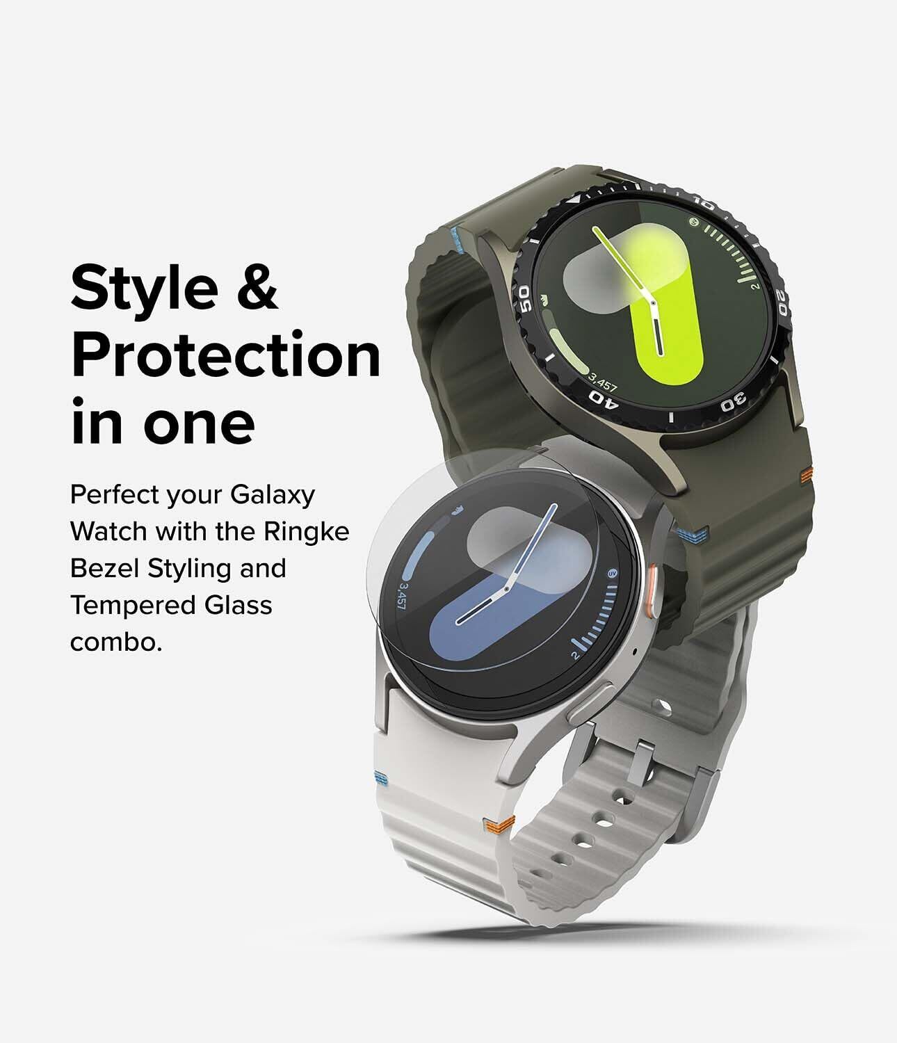 [【Ringke】Galaxy Watch 7 44mm ケース BEZEL STYLING & GLASS (ケース1枚+ガラスフィルム1枚) ステンレス製 変色防止 耐衝撃 超薄型 保護ケース メタリック ギャラクシーウォッチ7 44mm スマートウォッチ メタリックケース - 44-02 Black]