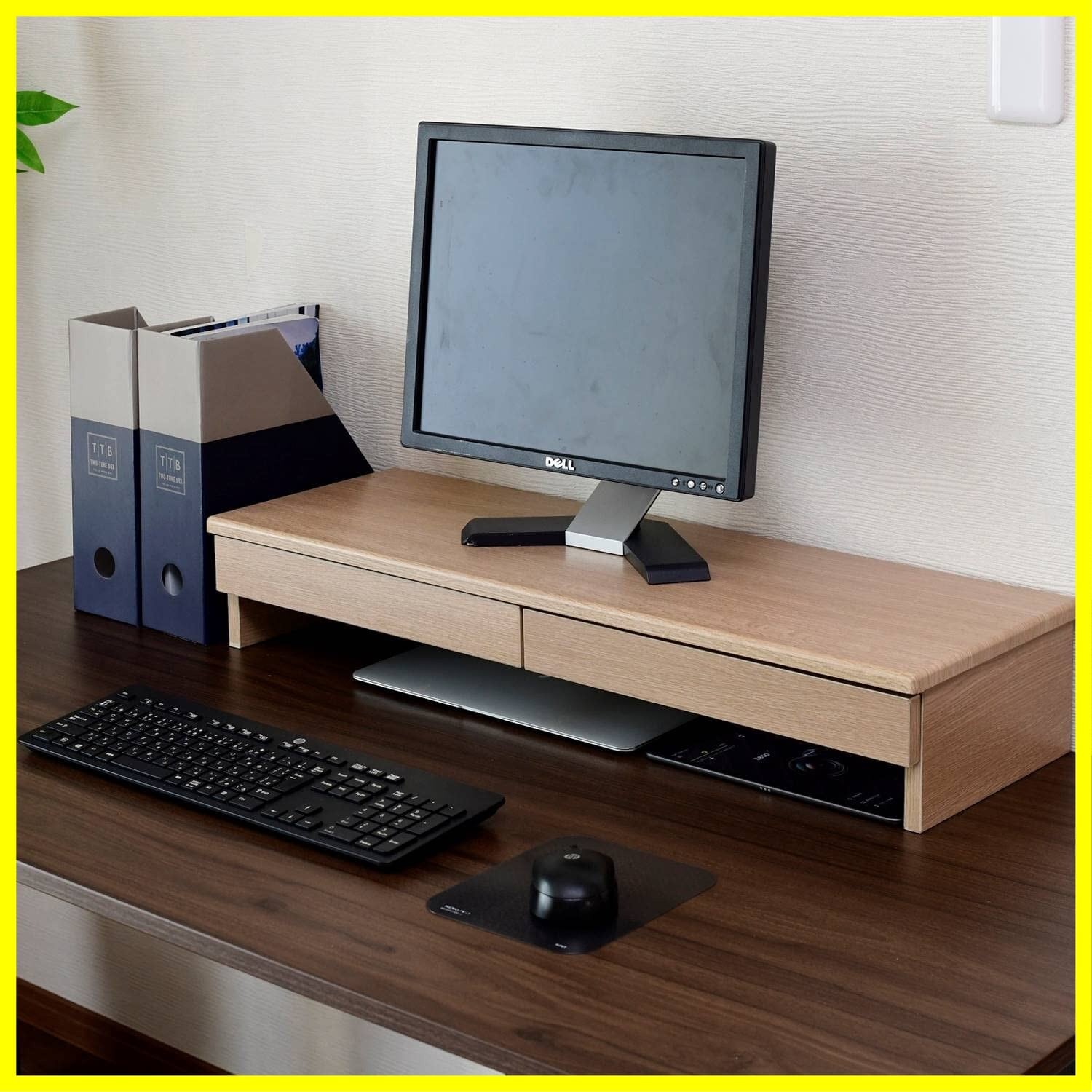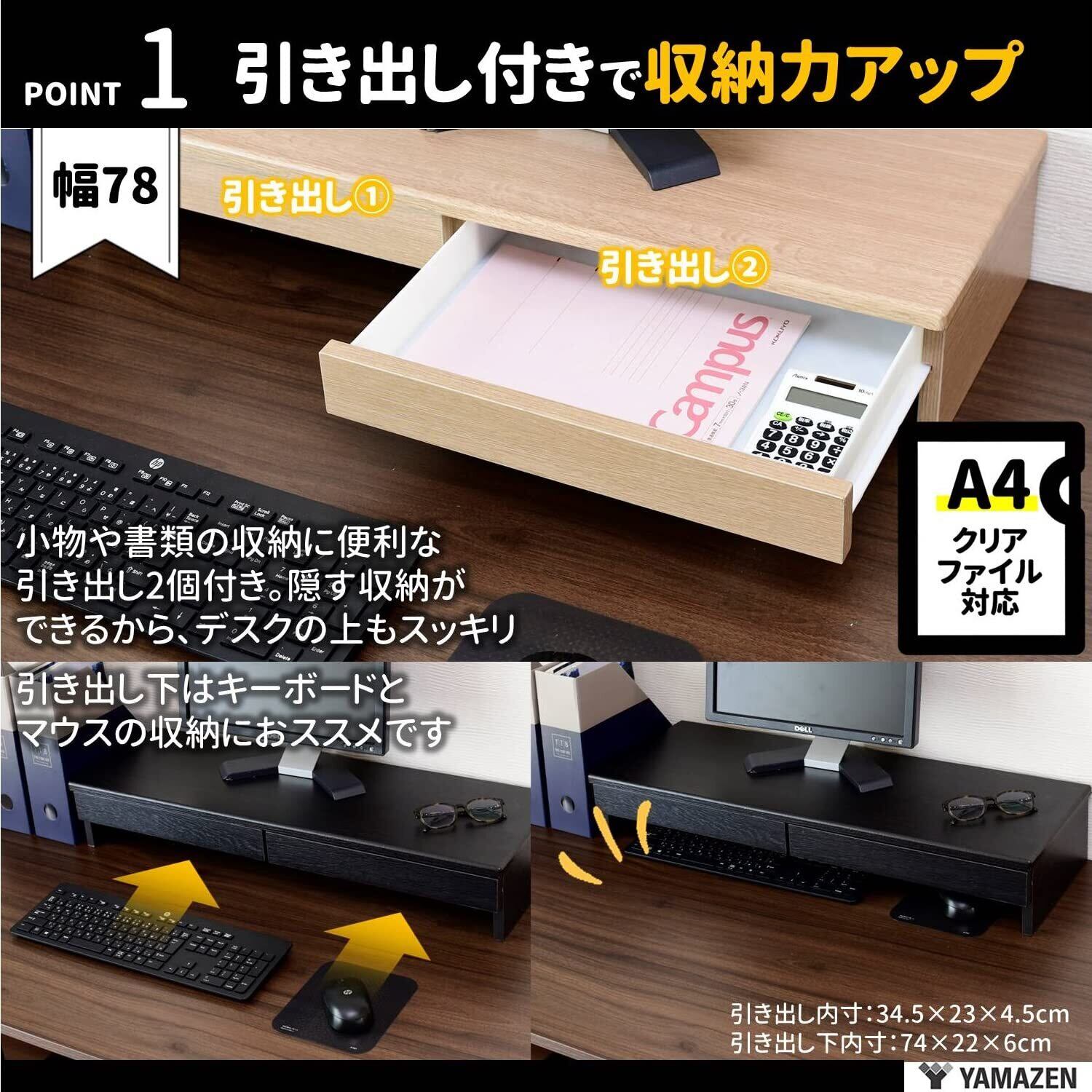 [山善(YAMAZEN) モニター台 引き出し2個 (A4クリアファイル対応) パソコン台 ディスプレイ台 机上台 幅78×奥行26×高さ13.5cm 完成品 ナチュラル DTS-H8025(NA) テレワーク]