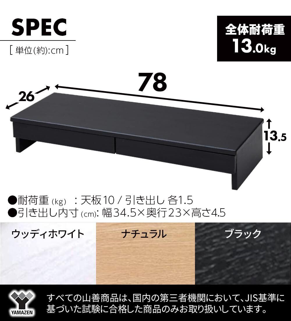 山善(YAMAZEN) モニター台 引き出し2個 (A4クリアファイル対応) パソコン台 ディスプレイ台 机上台 幅78×奥行26×高さ13.5cm 完成品 ナチュラル DTS-H8025(NA) テレワーク
