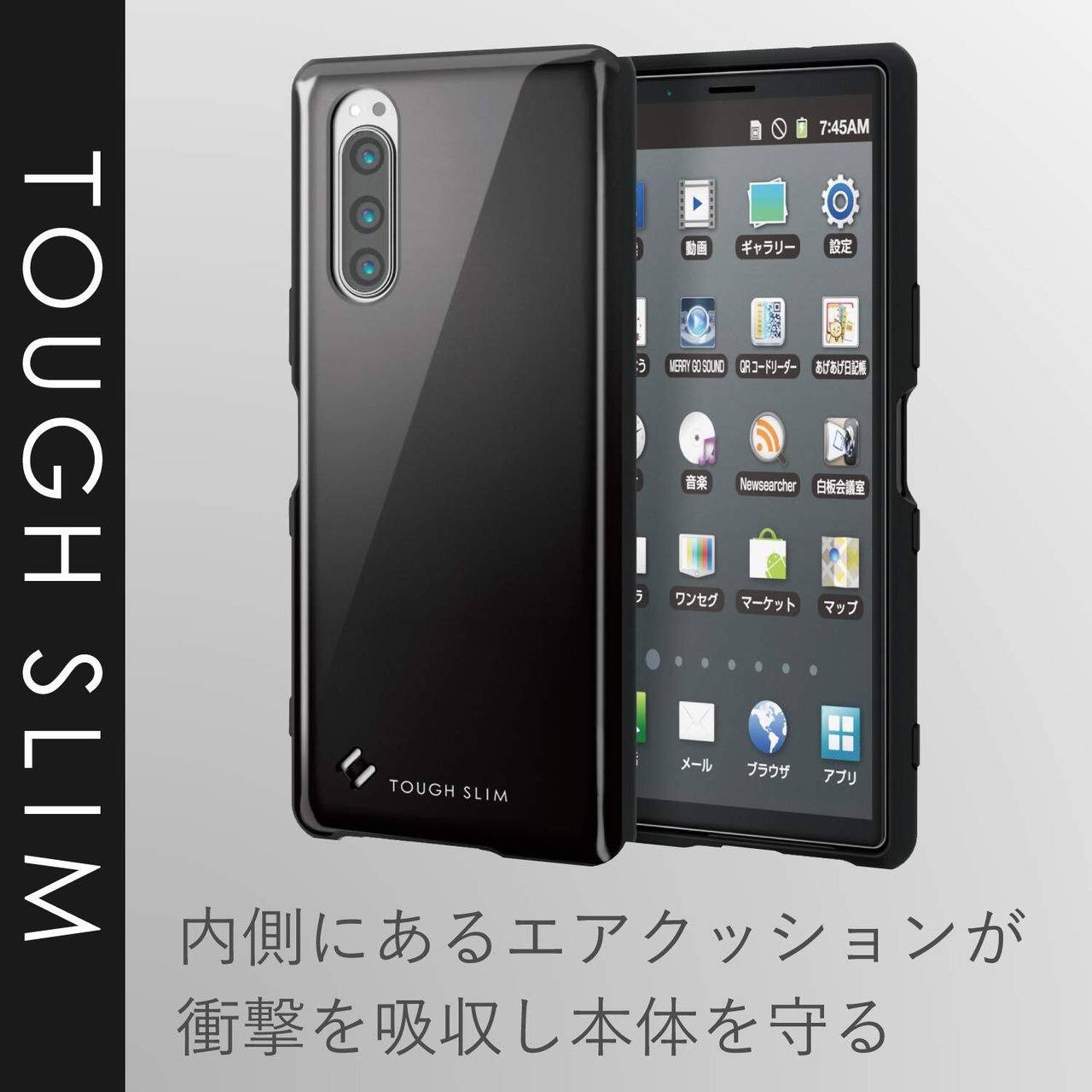全周に配置した独自設計のエアクッションが効率的に衝撃を吸収するXperia 5用TOUGH SLIMケースです。