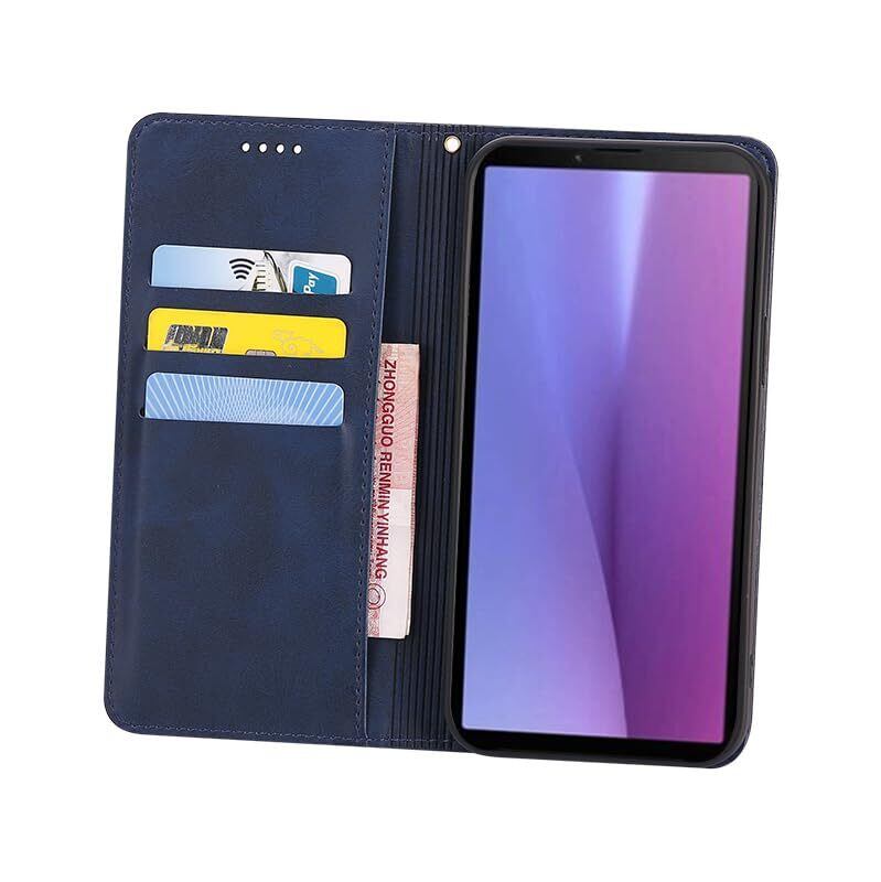 適用 Xperia 10 V ケース 手帳型 適用 エクスペリア10 V SOG11 / SO-52D 手帳型 ケース カバー PUレザー カード収納 財布型 耐衝撃 ケース マグネット スタンド機能付き 5色 (適用 Xperia 10 V SOG11 / SO-52D ケース 手帳型) (深い青)