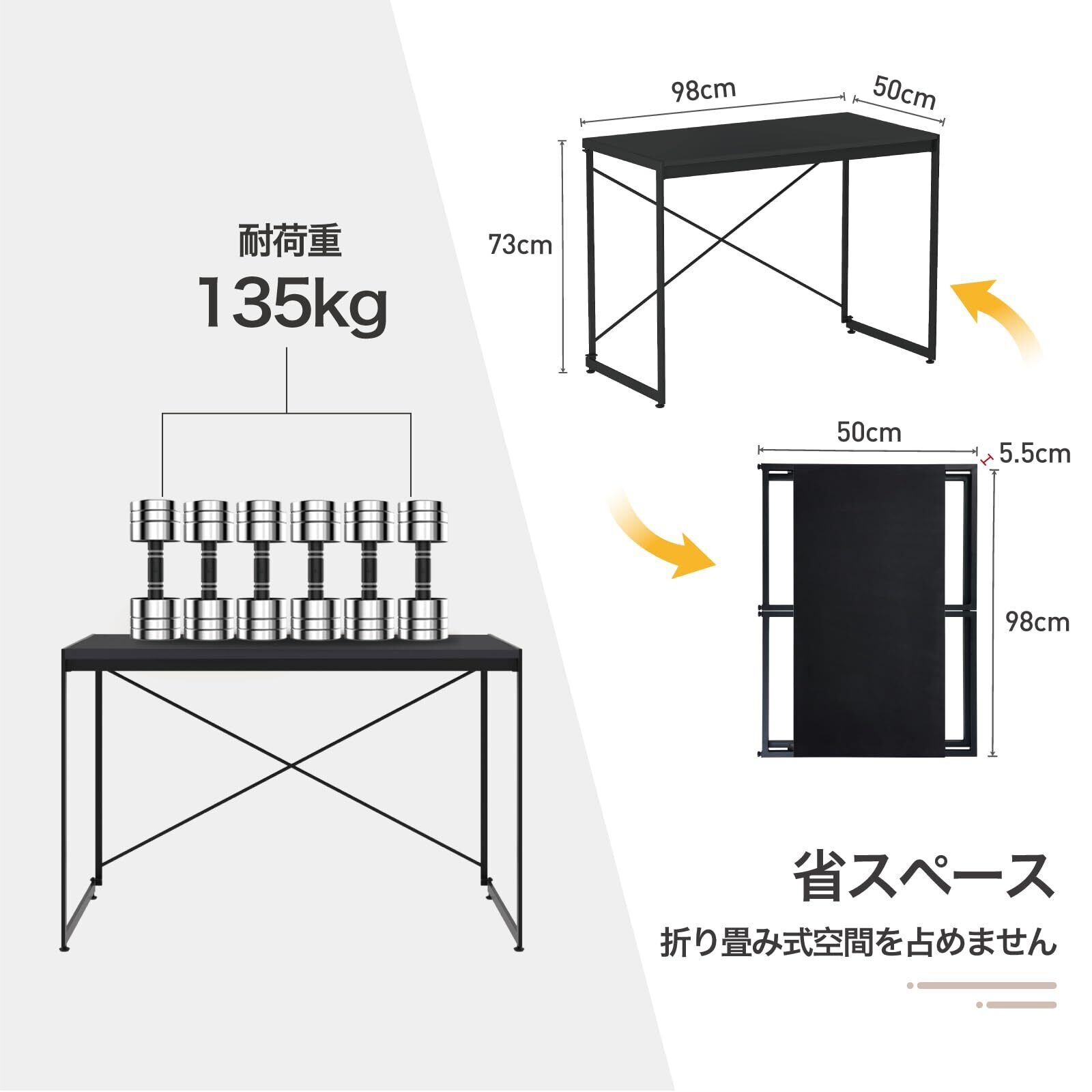【頑丈な構造と高い耐荷重】このデスクは、耐荷重135KGを実現しているため、大型モニターや重い本、機器を安心して置くことができます。しっかりとした作りで、日常の使用においても安定感があり、安心して作業を進められます。
