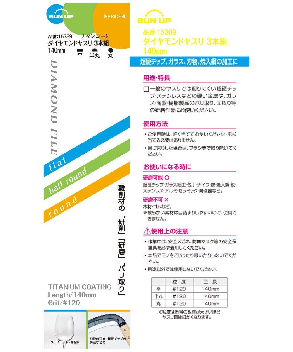 近与(KONYO) SUN UP ダイヤモンドヤスリ 3本組 チタンコーティング 金属 棒ヤスリ 140mm