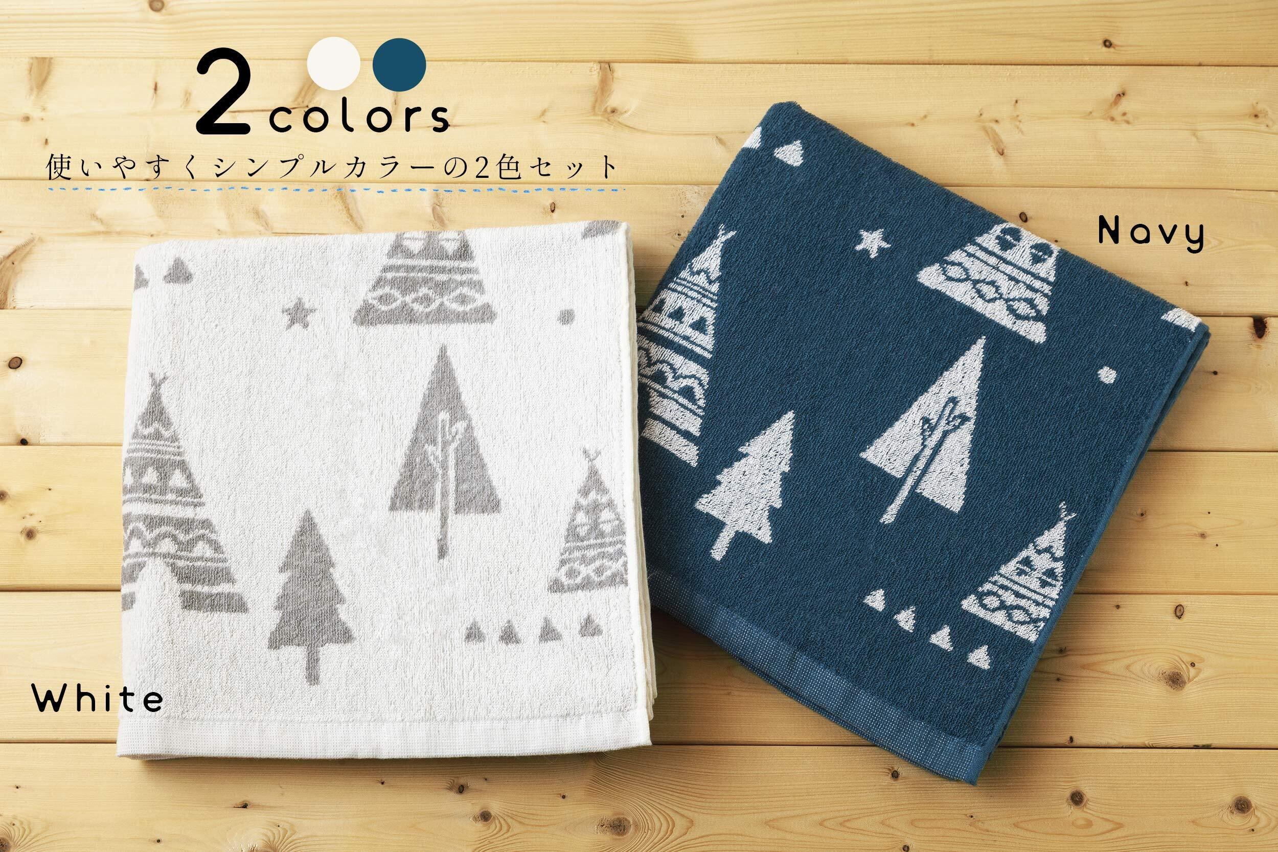Kosugizen バスタオル 北欧調ジャガード ツリー 2色各1枚入 60×120㎝ 北欧風モチーフ 薄手タイプ 2枚セット SV-6514-2